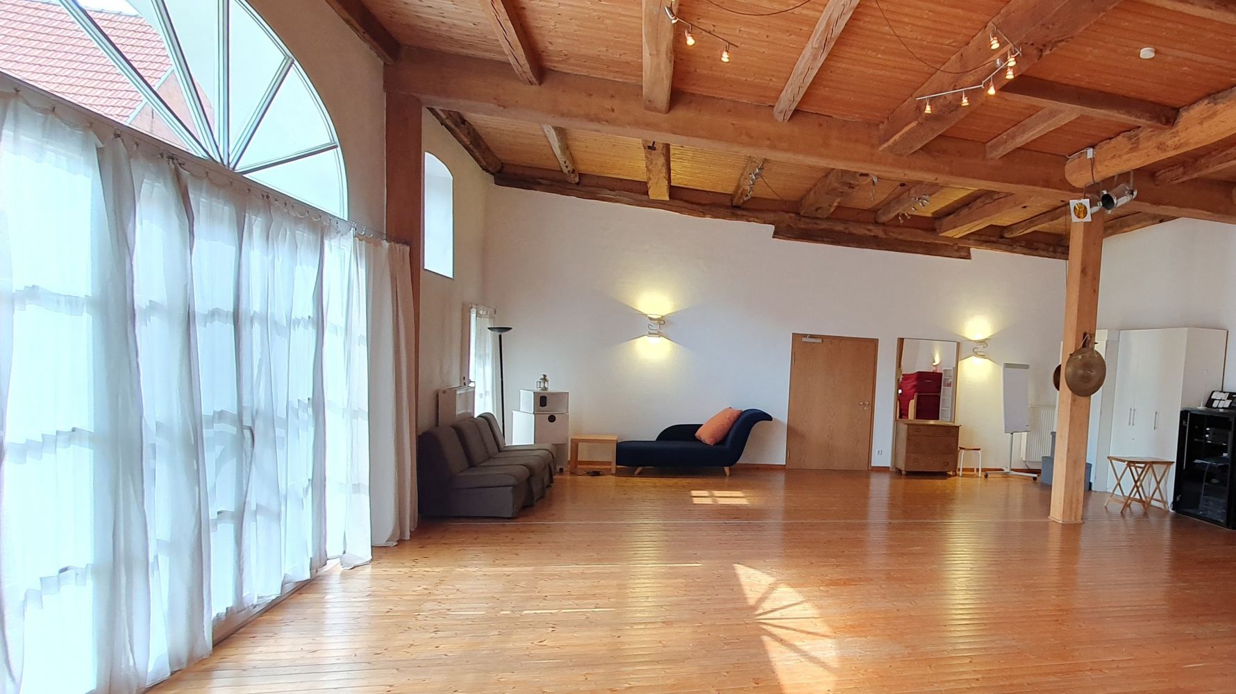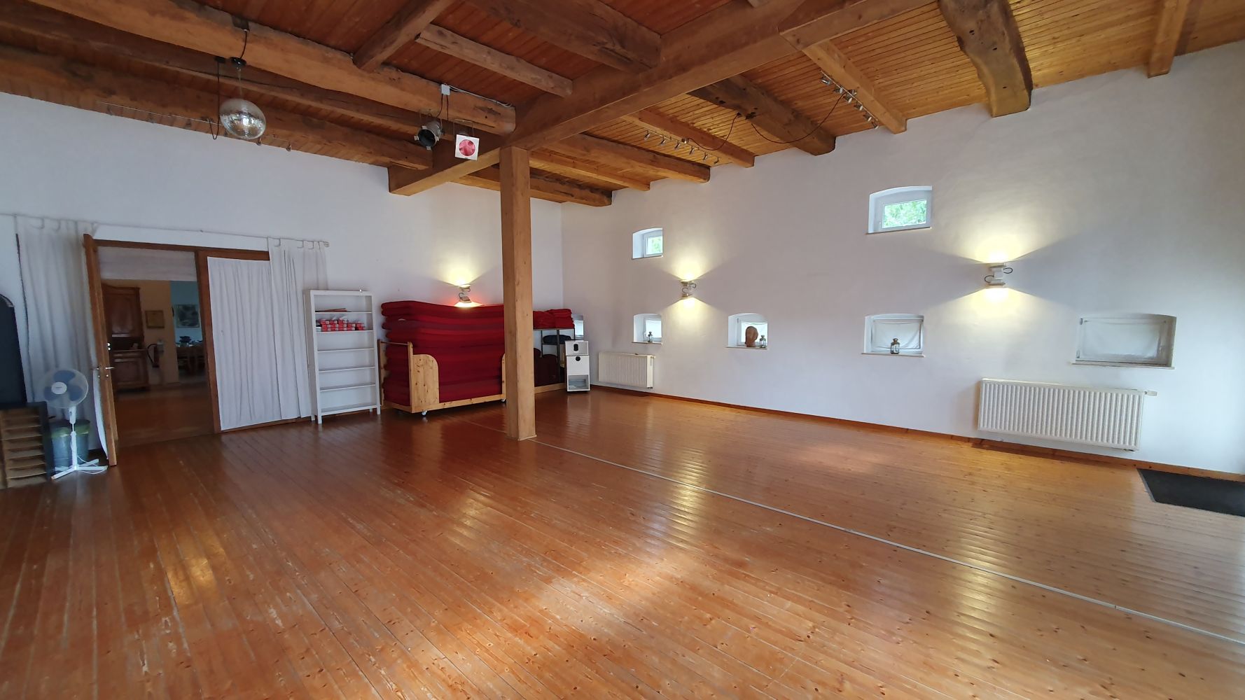 Unsere beiden Gruppenräume sind ca. 120 m² groß, verfügen u.a. über je eine Musikanlage, Sitzkissen, Wolldecken und Matratzen. Der obere Raum ist mit einem hellen Teppichboden ausgestattet, der untere hat einen Holzboden. Bestuhlung, Leinwand, Beamer und sicherlich einiges mehr können auf Anfrage bereitgestellt werden...