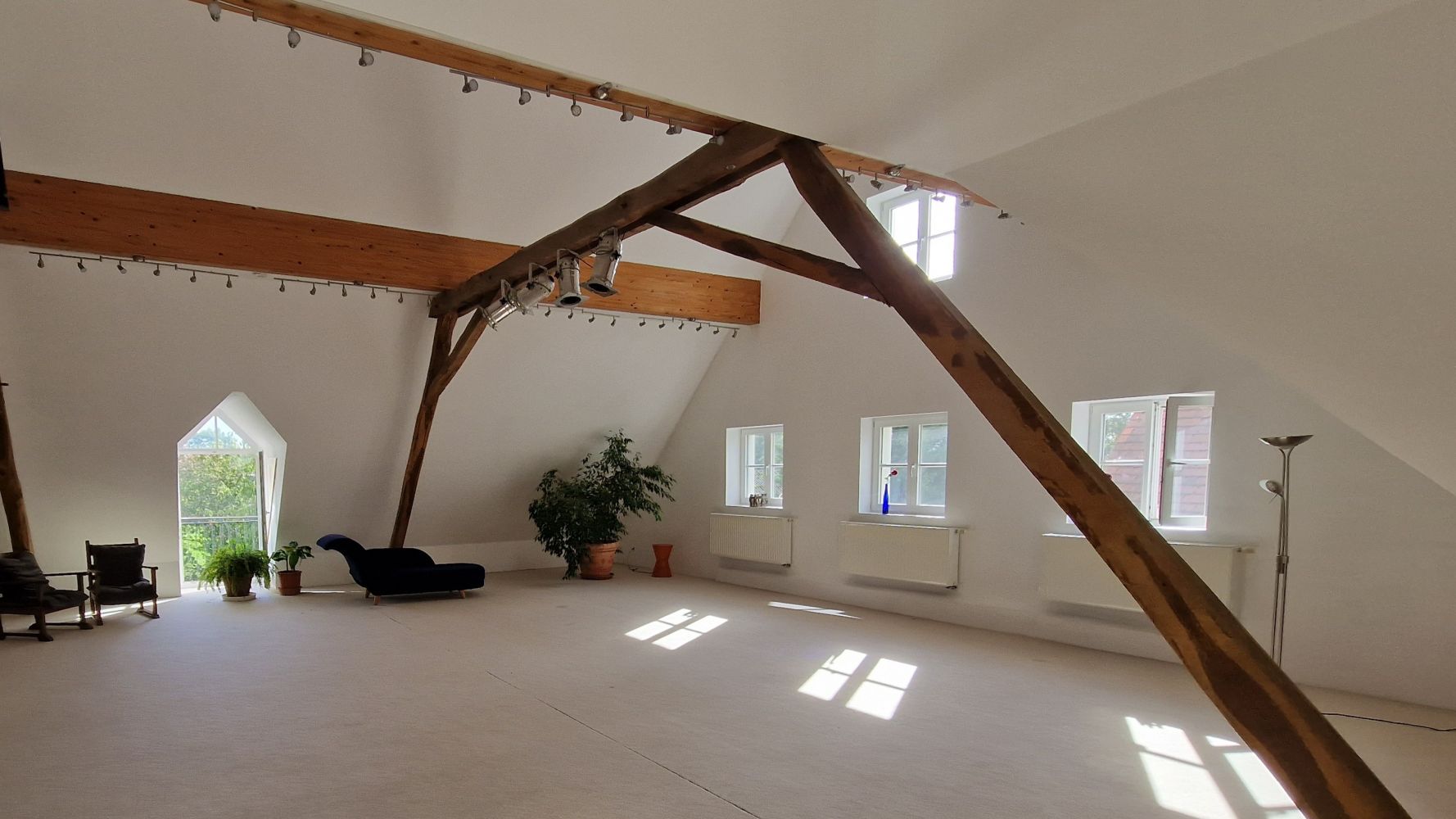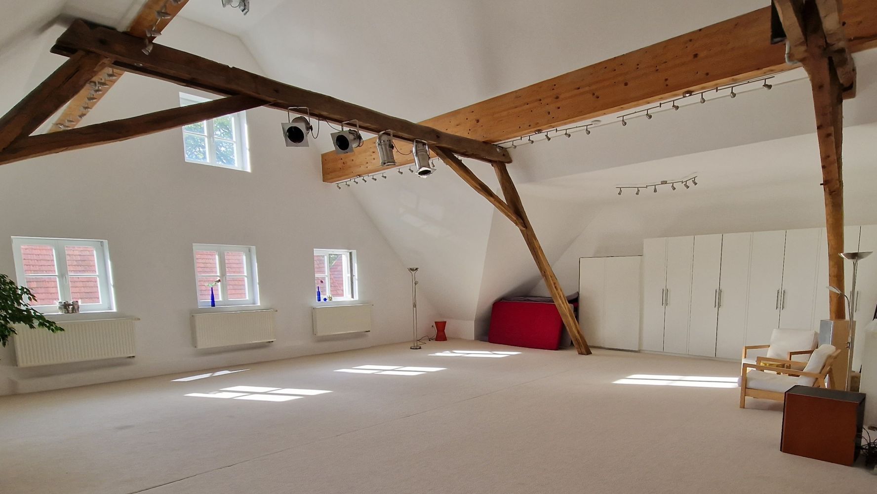Unsere beiden Gruppenräume sind ca. 120 m² groß, verfügen u.a. über je eine Musikanlage, Sitzkissen, Wolldecken und Matratzen. Der obere Raum ist mit einem hellen Teppichboden ausgestattet, der untere hat einen Holzboden. Bestuhlung, Leinwand, Beamer und sicherlich einiges mehr können auf Anfrage bereitgestellt werden...