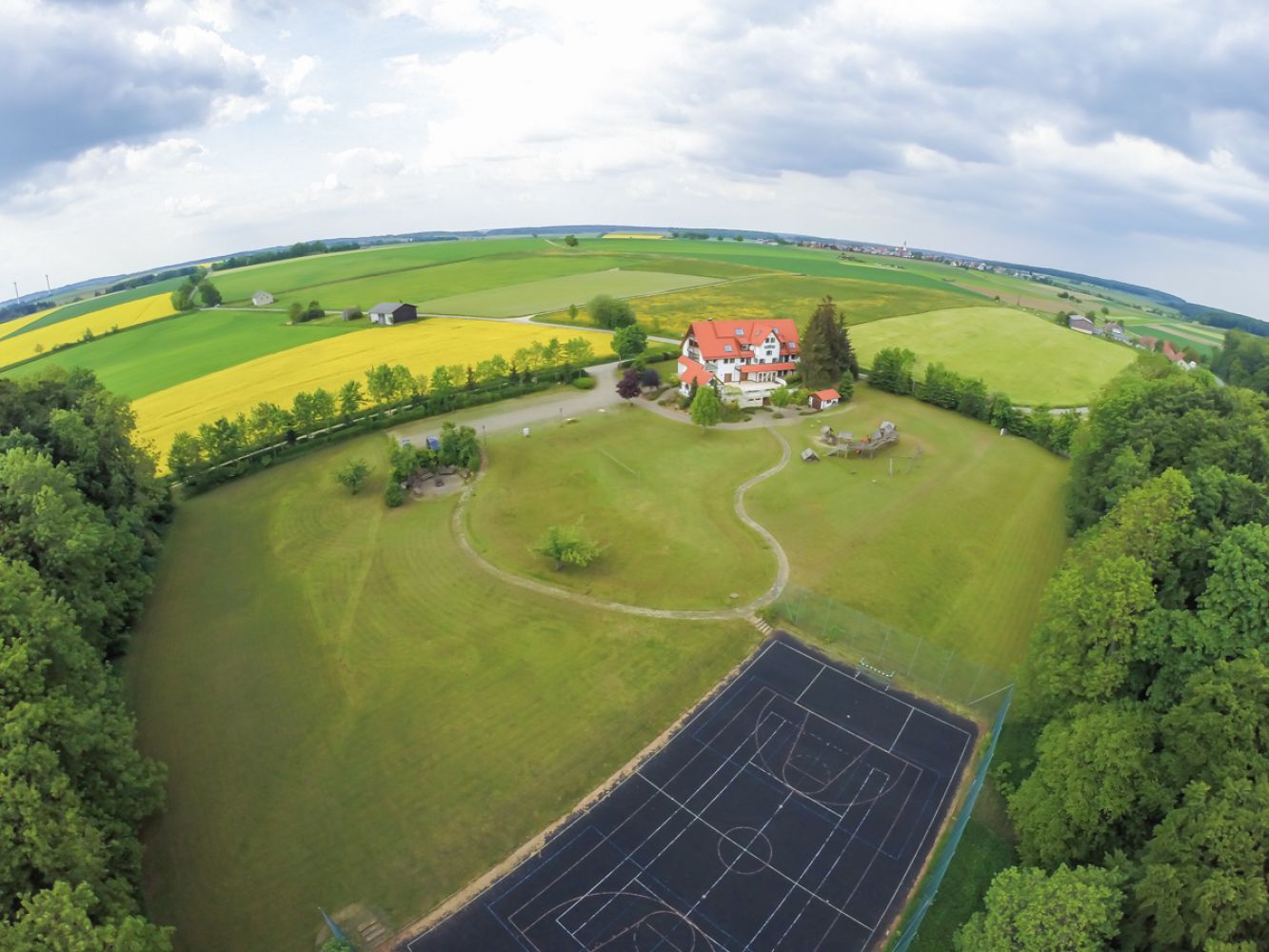 mit einer professionellen Großküche (inkl. Küchenutensilien, Geschirr und Besteck) für Selbstversorger und Caterer, Indoor-Aktivitäten (Billardtisch, Tischkicker und Tischtennis ), Tagungstechnik (2 Leinwände, Flipchart, freies W-LAN, Räume für Gruppenarbeit). In absoluter Alleinlage bietet das vielfältig nutzbare Haus und die weitläufige Außenanlage (15.000m²), mit Fußballplatz und Volleyballfeld, dem windgeschützten Grillplatz, Entfaltungsmöglichkeiten für Ihre Outdoor-Aktivitäten oder Events. Freie Trauungen in dieser grünen Oase sind beliebt. Parkplätze für Fahrzeuge sowie Busse sind direkt am Haus vorhanden.