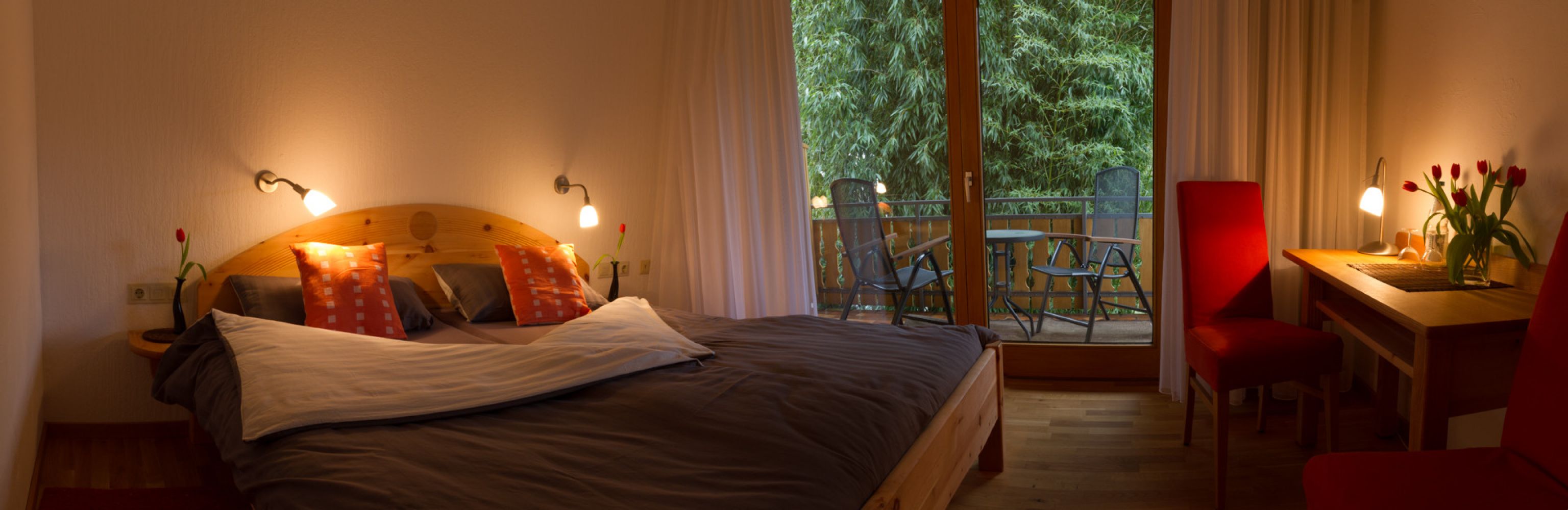 Ö–kologischer Ausbau der Zimmer mit Parkettboden, Wandfarben auf mineralischer Basis. Bettwaren und Handtücher aus Biobaumwolle aus ökologischer Erzeugung. Die Zimmer verfügen alle über Dusche / WC