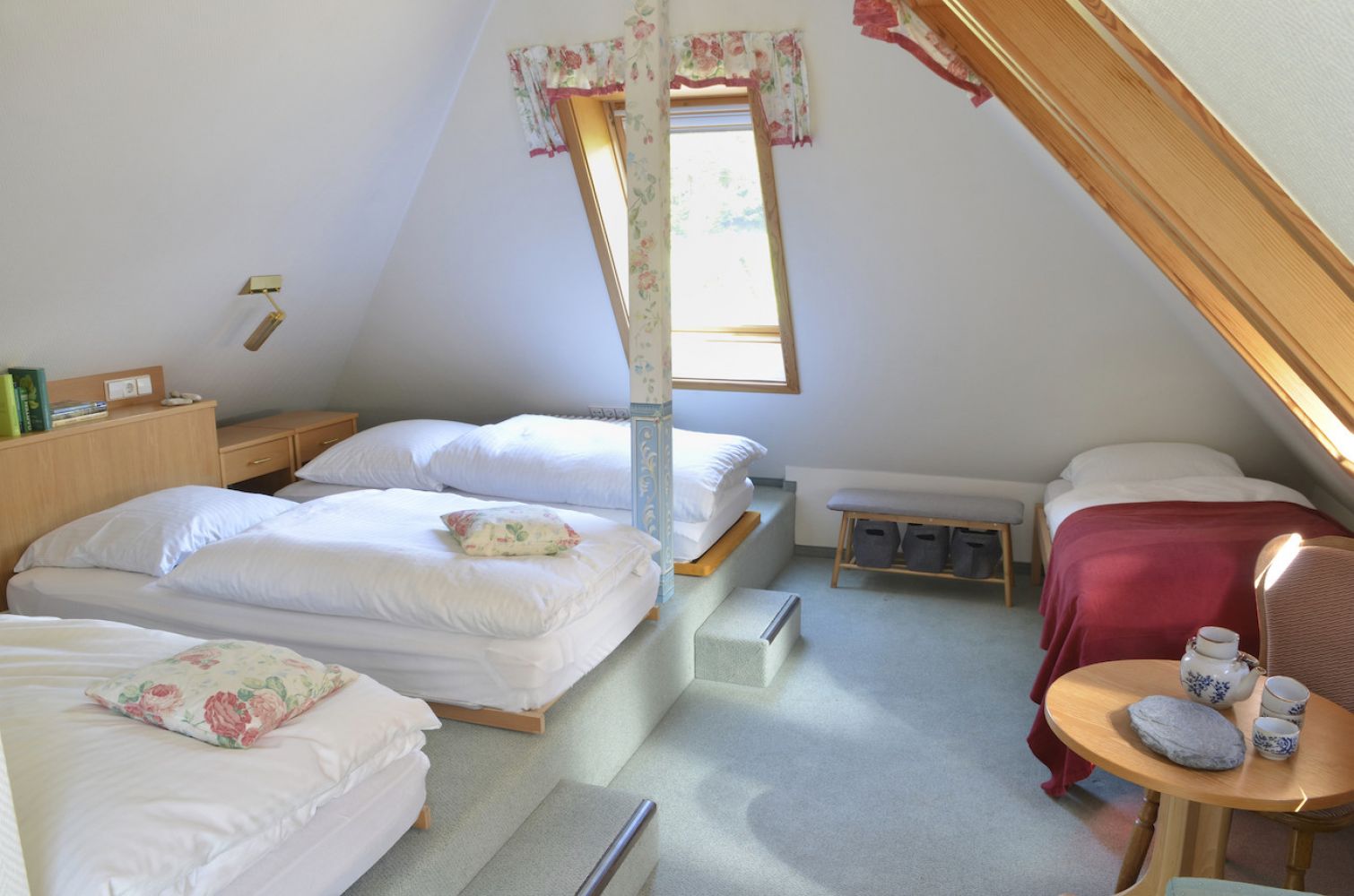 Das Haus verfügt über verschiedene Gästezimmer mit insgesamt 17 Gästebetten: Einzelzimmer, Doppelzimmer mit Doppel- und Einzelbetten, Drei- und Vierbettzimmer.