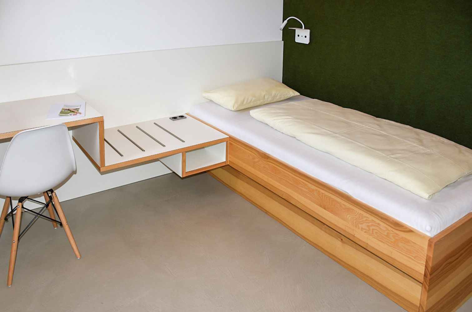 Jedes Zimmer ist indiviuell mit einem anderen Holz konstruiert und nach deren Holzart benannt. Alle Zimmer sind mit einem großzügigen Bad und einer eigenen Frischluftanlage, um kontinuierliche Frischluftaustausch zu gewährleisten, ausgestattet. Die Zimmer sind von außen begehbar. Es sind außerdem 2 rollstuhlgerechte Zimmer vorhanden.