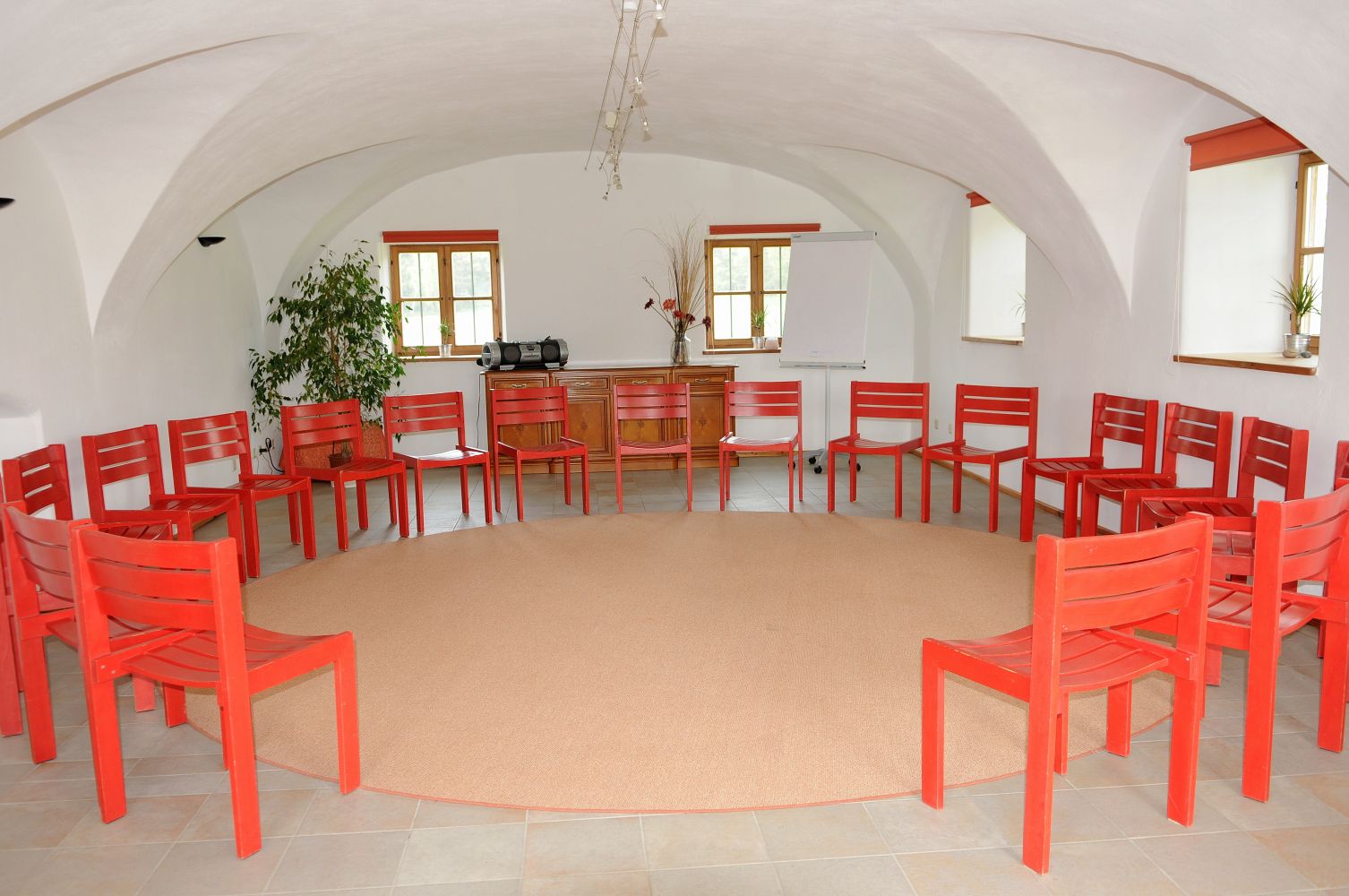 Der Hof bietet drei Seminarräume: Seminarraum "Gewölbe", ein freundlicher Raum für ruhiges und intensiveres Arbeiten in Gruppen. Seminarraum "Granit", ein uriger Raum für Workshops und Spiele. Zum Erholen und geselligen Beisammensein lädt eine Couchecke ein. Für Ihre Vorträge sind schnelles Internet, Moderationsequipment, Beamer und Projektionsleinwand vorhanden. In unserem neuen Haus der Bäume befindet sich unser großzügiger, moderner Seminarraum „Fichte“ (120 Quadratmeter). Der Seminarraum ist mit einer Frischluftanlage, natürlichem Estrichboden, Fußbodenheizung und Aufzug ausgestattet. Der Seminarraum „Fichte“ eignet sich hervorragend für größere Gruppen, sorgt aber auch für große Abstände in dieser besonderen Zeit. Ebenfalls für Meditationen und Entspannungskurse bietet der Seminarraum eine ideale Atmosphäre.