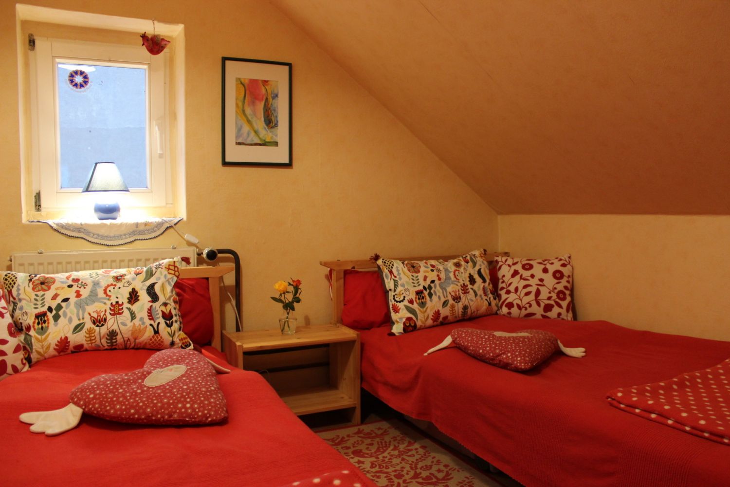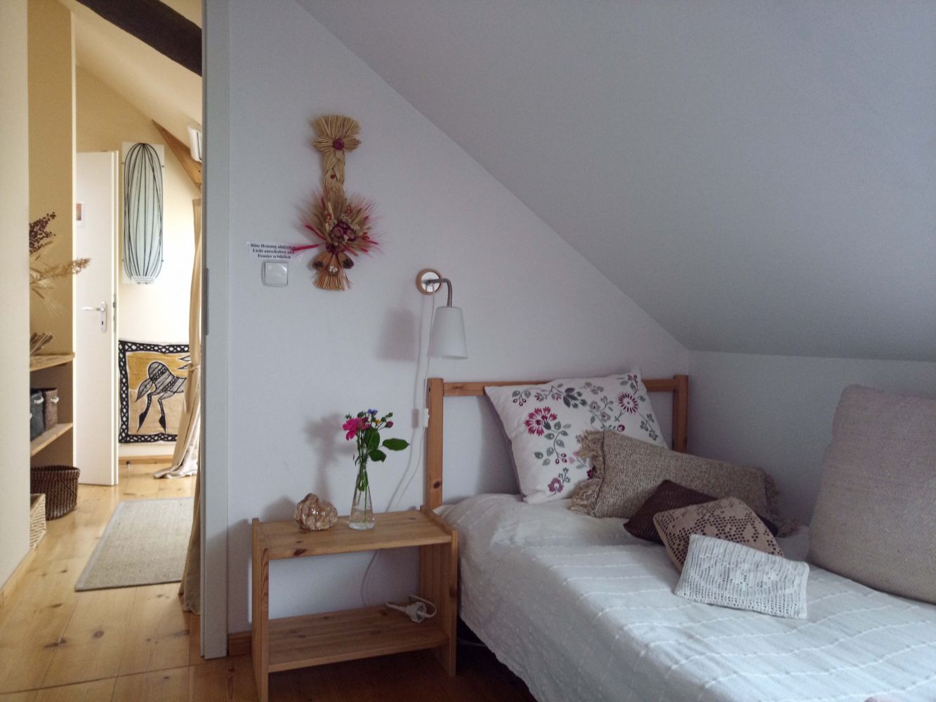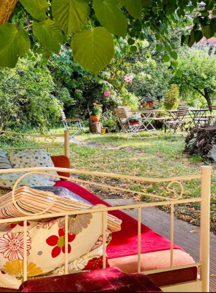 Zimmerbeschreibung Es stehen unseren Gästen 9 Zimmer (1 - Mehrbett mit insgesamt 21 Betten) zur Verfügung. Einzelzimmerbelegung ist - je nach Gruppengröße - möglich. Es gibt eine Luxussuite (das indische Appartment "Shanti"), und zwei Tinyhouses im Garten. Jedes Zimmer hat seinen ganz unverwechselbaren Charakter und trägt einen individuellen Namen. Es gibt 4 Bäder mit Dusche und WC zur gemeinschaftlichen Nutzung sowie eine Kompost-Toilette und Regenwasserdusche im Garten.
