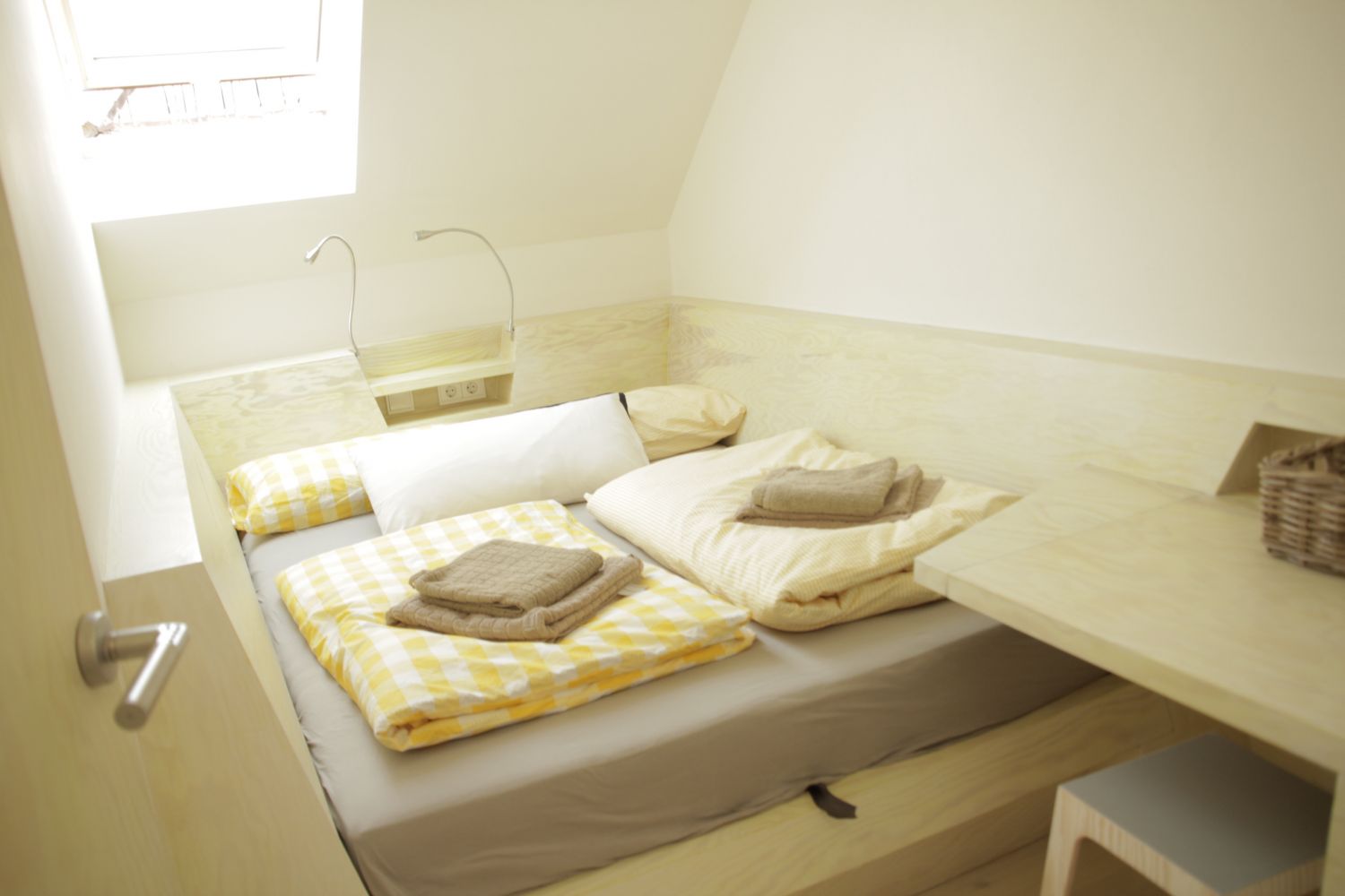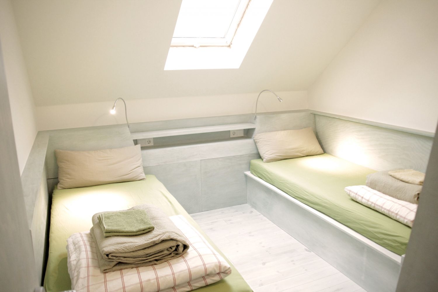 Das Taubenblau bietet Schlafplätze für bis zu 24 Personen in 15 Zimmern, fünf Einzelzimmer, sieben Schlafzimmer mit Doppelbetten, davon drei mit Privatbädern, ein Dreibettzimmer sowie zwei Gruppen-Schlafräumen. Ein Gemeinschaftsbad befindet sich auf der ersten Etage mit zwei Duschen, einer Badewanne und drei WC, leicht zugänglich für alle Schlafbereiche. Dazu gehört Zugang zur Küche, ein schöner offener Essbereich und der Taubenblau Seminarraum.