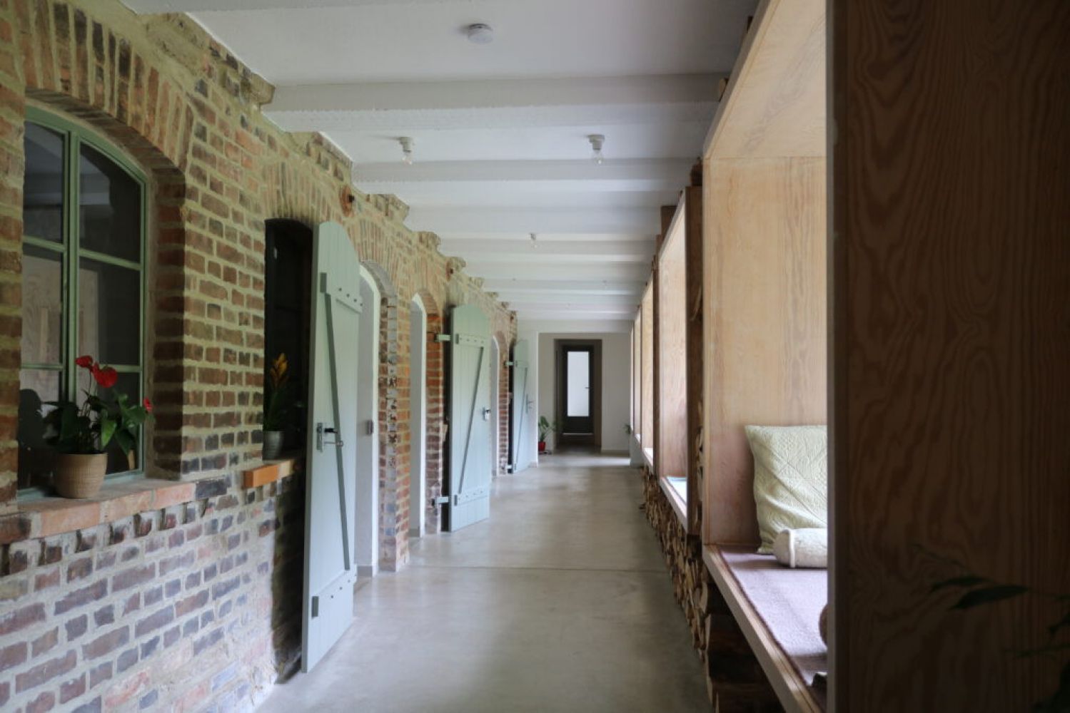 Um die Jahrhundertwende war der Seminarraum im Taubenblau ursprünglich der Dorfladen in Stolzenhagen. Seit unserer Renovierung beherbergt der Raum ein schönes Studio mit Holz Schwungboden und natürlichem Licht, das durch französische Türen und großen Fenstern dringt, die Blick auf die Gärten bieten. Ein Projektor steht zur Verfügung, zusammen mit anderen Medienangeboten . Der Seminarraum hat die Maße 620 x 950 cm und hat Platz für 20 Teilnehmende mit Matten für einen Yoga-Kurs oder ein ähnliches Event. Taubenblau bietet eine High-End-Profi-Küche für Workshops oder Seminare. Ob ihr selbst kochen möchtet oder wir Euch dreimal am Tag verwöhnen sollen, bleibt Euch überlassen. Wir machen Euch sehr gerne einen konkreten Vorschlag dazu.