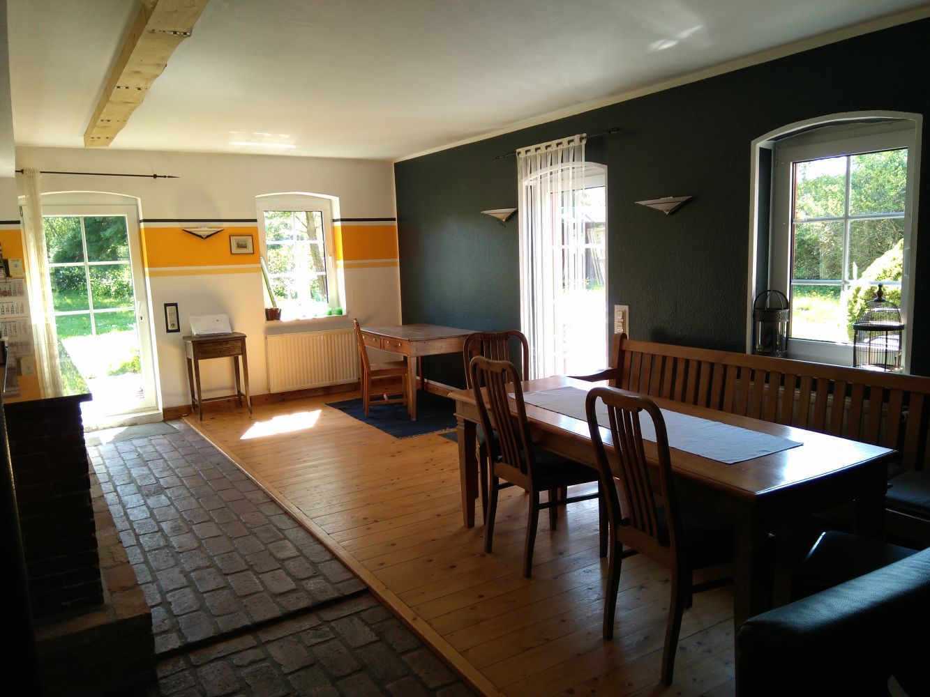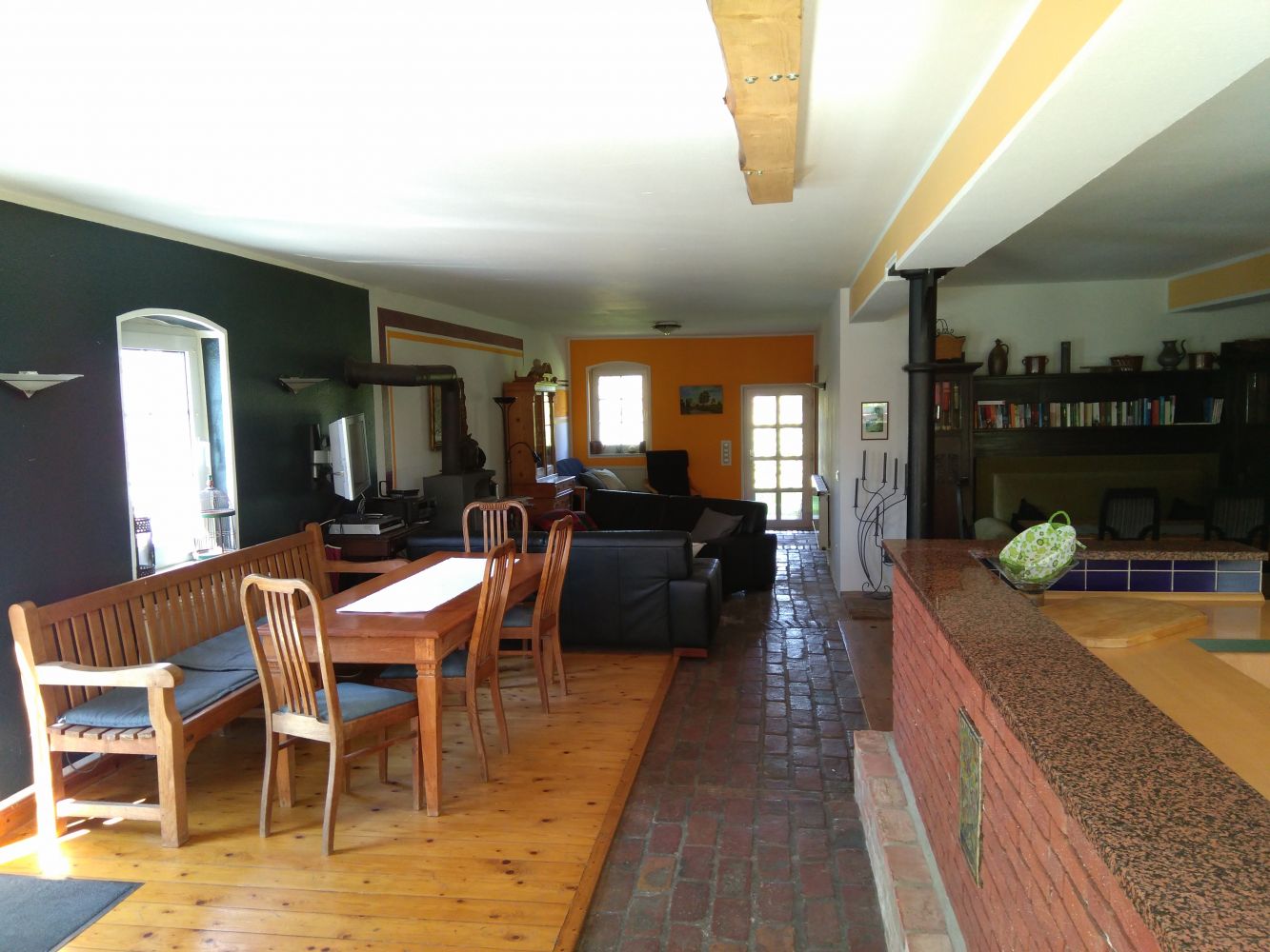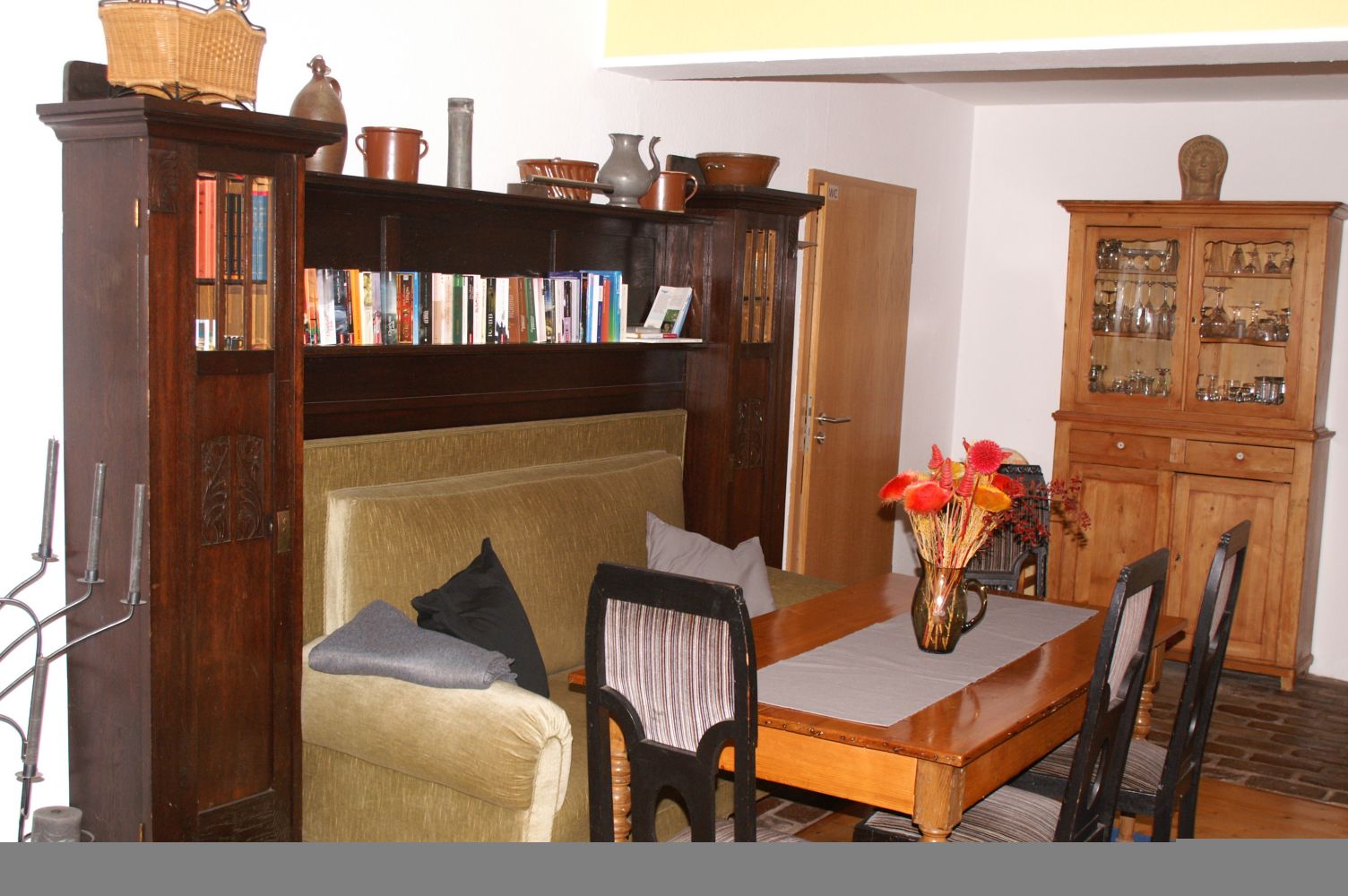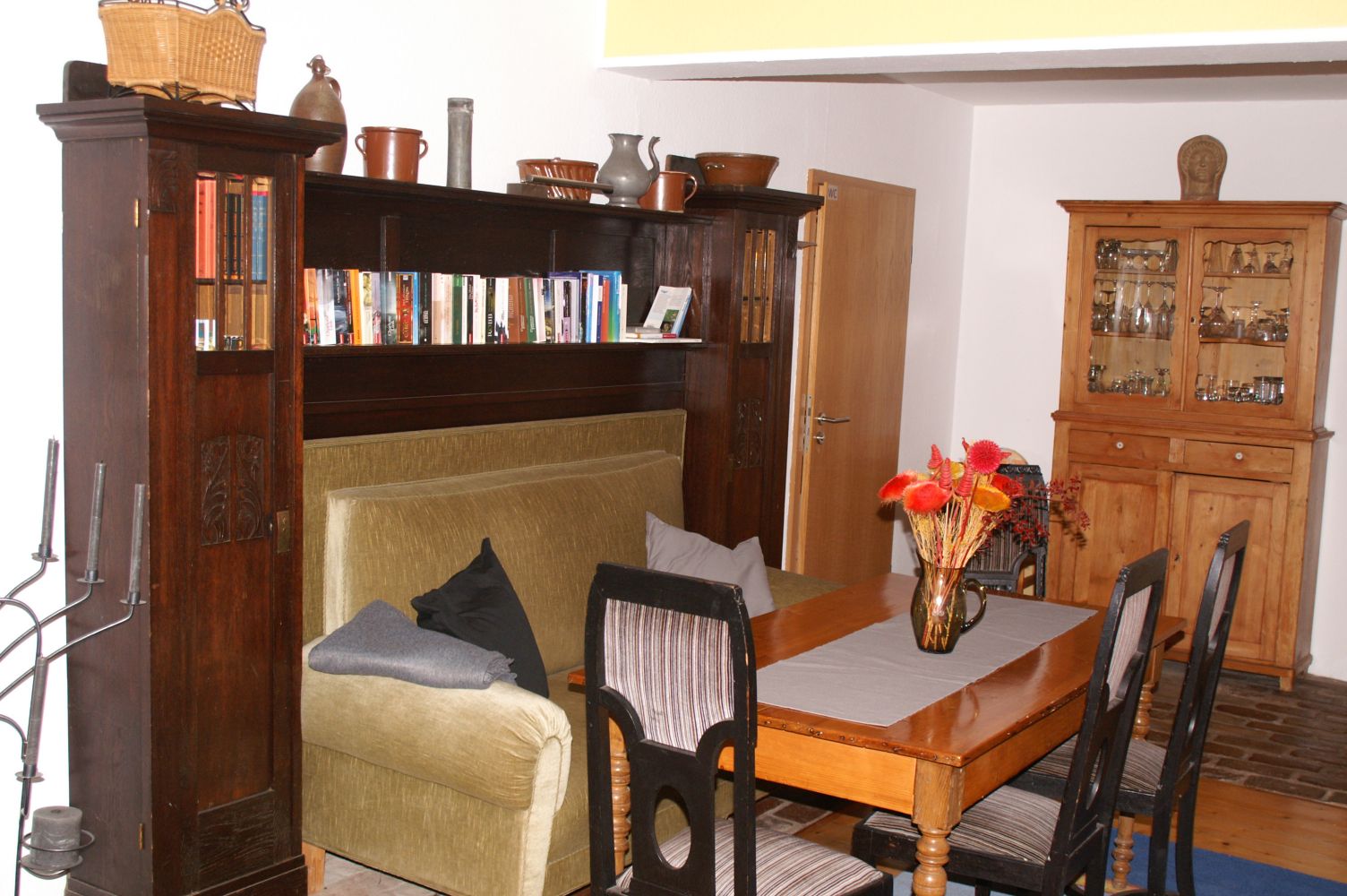 Räume zur ZusammenkunftNeben dem großen Gemeinschaftsraum für max. 30 Personen, gibt es in allen Wohnungen die Möglichkeit in kleineren Gruppen zusammen zu sitzen. Die Größe der Räume ist für 6-10 Personen geeignet. In allen Räumen ist internet verfügbar. Das Haus verfügt über ein WLan das bei Bedarf auch für die Zusammenarbeit genutzt werden kann.