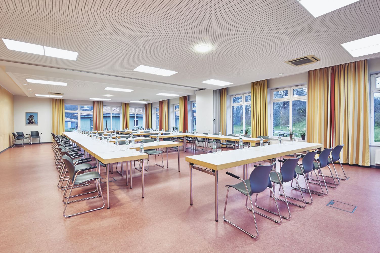Moderne TagungsräumeFür die Durchführung Ihrer Tagung stehen Ihnen 4 freundliche und moderne Tagungsräume mit natürlichem Tageslicht zur Verfügung. Zur Grundausstattung aller Räume gehören W-Lan, Flipchartständer und ein Overheadprojektor.
