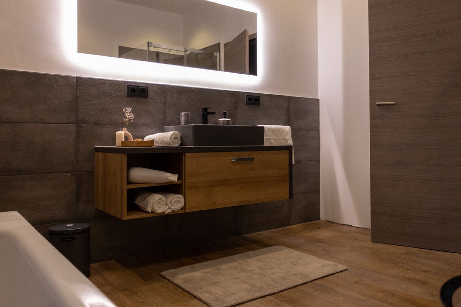 Zusätzlich gibt es einen großen 100 qm großen Allgemeinbereich, der in der Grundaustattung mit Tischen und Stühlen, sowie 70 Zoll Smart TV für Präsentationen etc. ausgestattet ist. Weitere Allgemeinflächen sind die 150 qm große möblierte Terrasse und der Garten.