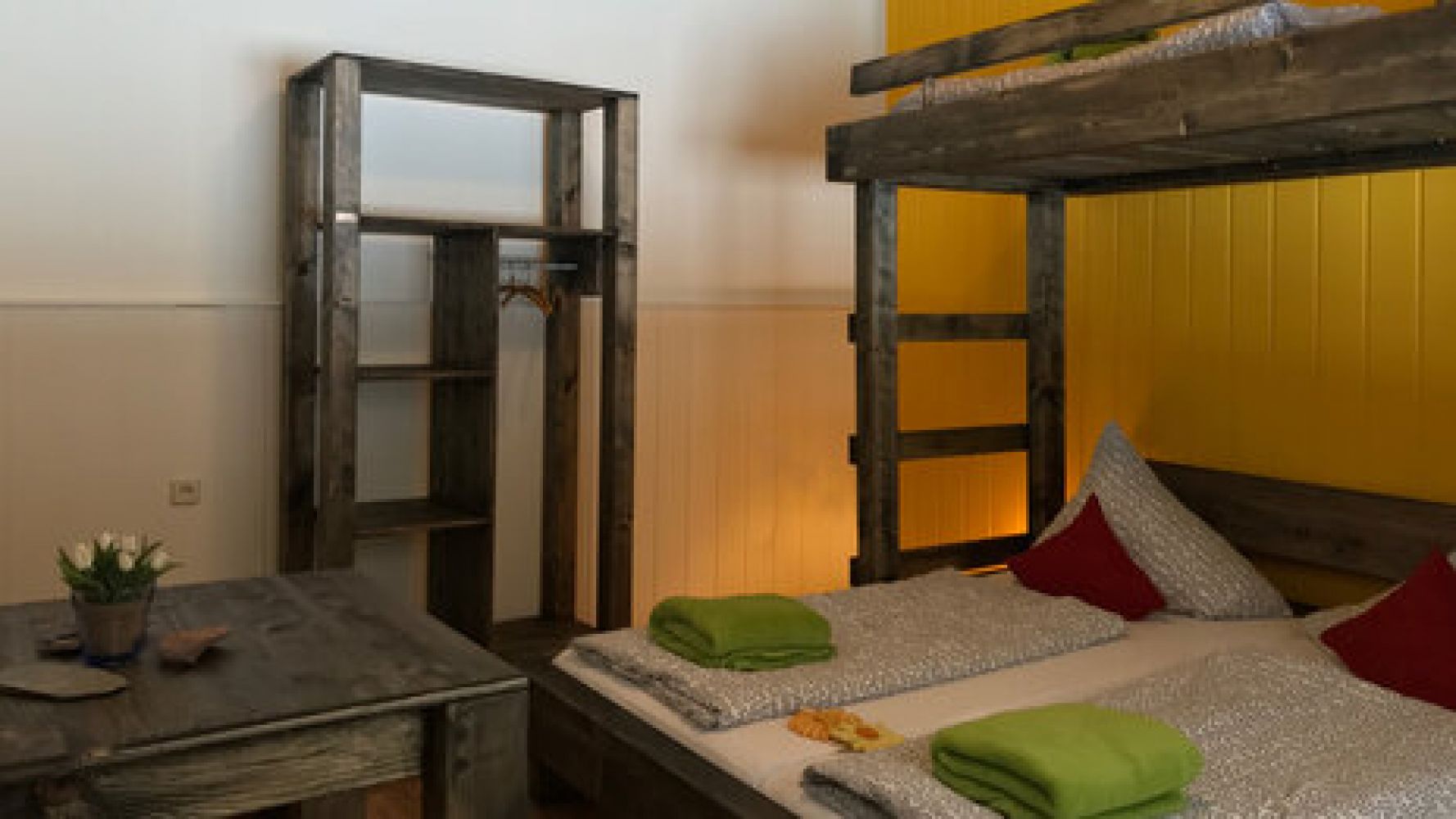 Wir lieben Holz und deshalb besteht unsere Einrichtung aus viel viel Holz mit Möbeln aus regionaler Herstellung