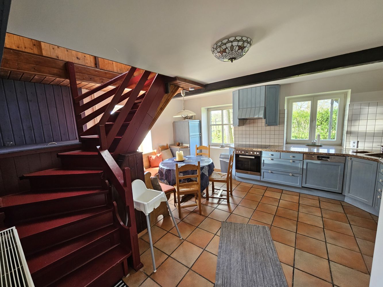 In idyllischer Waldrandlage verortet, bietet die alte windschiefe Waldkate Platz für 9 Personen. Vier Schlafzimmer laden zum Verweilen ebenso ein wie eine Küche zur Selbstversorgung, ein gemütliches Wohnzimmer, Heizung, WLAN und warmes Wasser von der Wärmepumpe und ein modernes Bad. Das Haus ist klein und kuschelig; große Gäste müssen manchmal den Kopf einziehen. Die Türhöhen stammen noch aus dem vorletzten Jahrhundert. Mit Blick aus dem Küchenfenster schaut man auf das Gehege eines Damwildrudels und kann im Herbst auch die Hirschbrunft live miterleben.