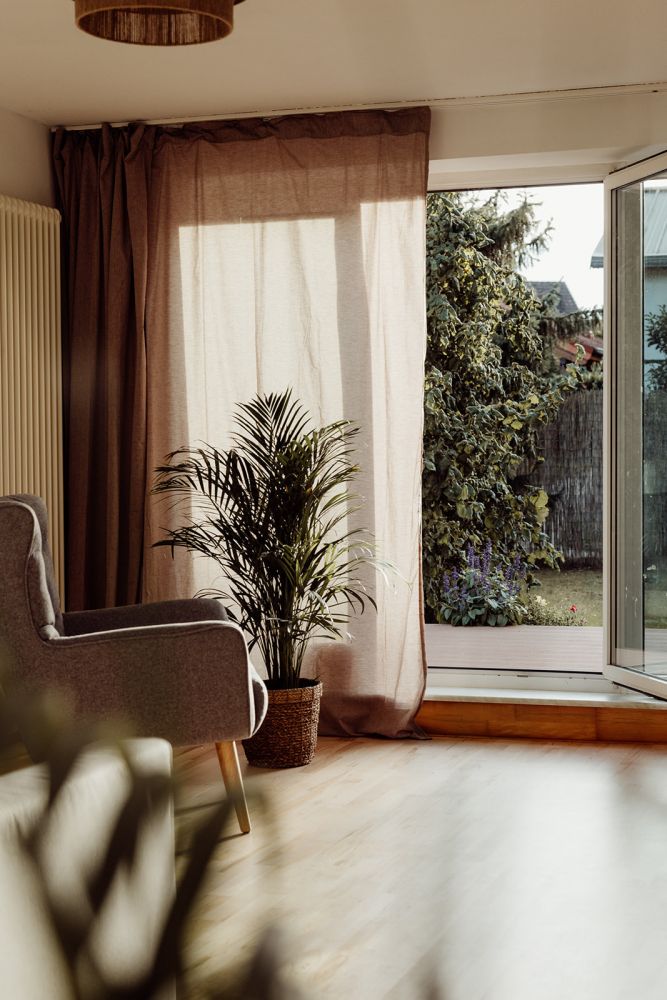 Zugang zur Terrasse mit Blick in den ruhigen Garten