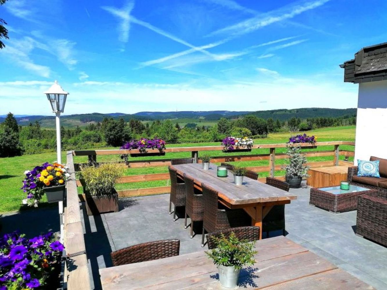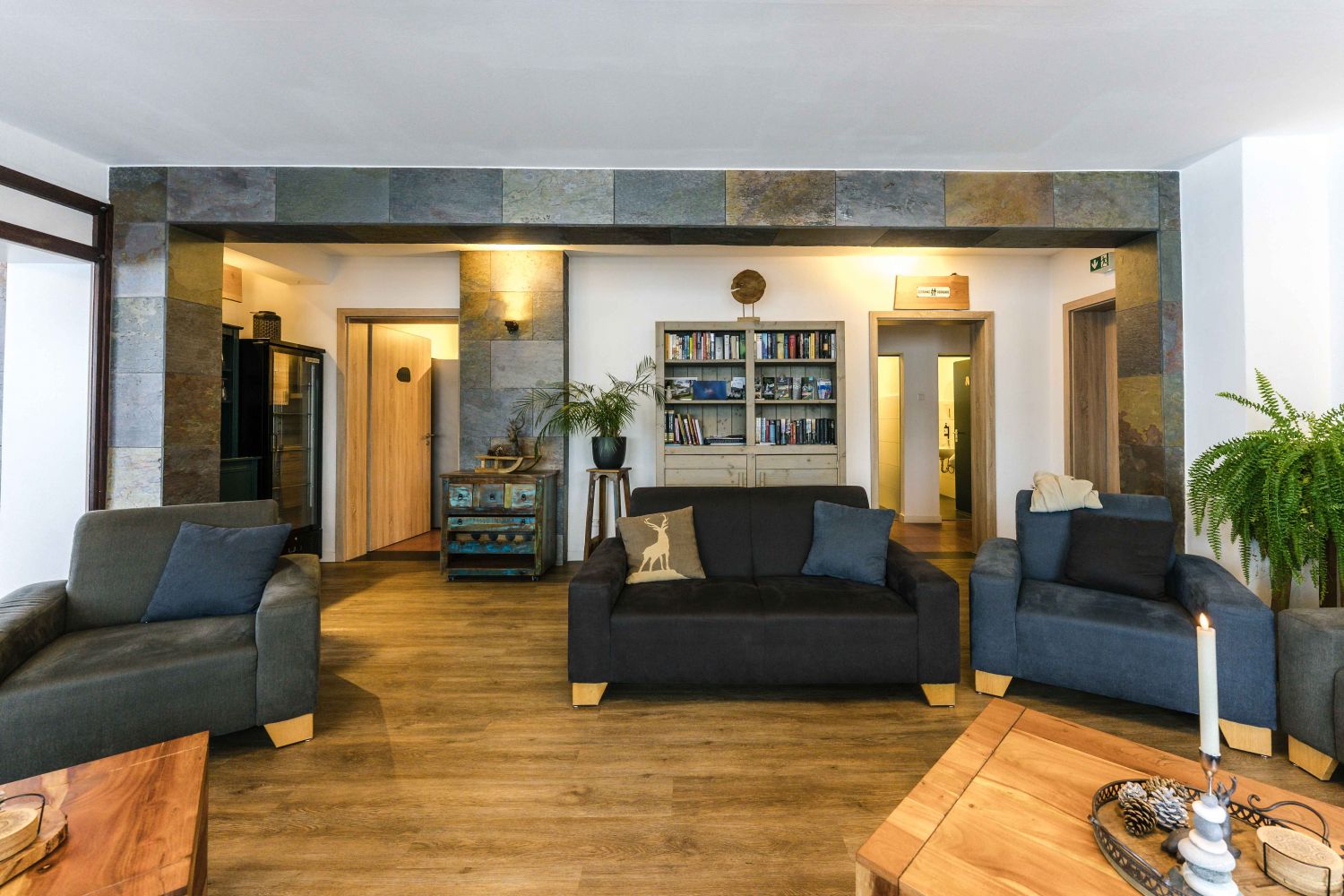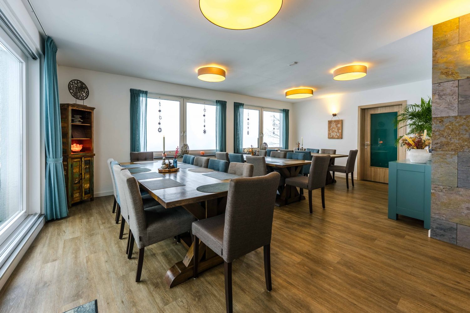 Mit viel Zeit und Liebe haben wir die Räumlichkeiten von Haus BerchStein im Jahr 2020 renoviert und komplett neu eingerichtet. In den zusammengeschlossenen Gruppenräumen von Haus BerchStein ist ausreichend Platz für Ihre gesamte Gruppe mit bis zu 18 Personen. Außerdem gibt es 8 Schlafzimmer und 6 Badezimmer, im gehobenen Hotelzimmerstil. ACHTUNG ERWEITERUNG AB 2026! Ab 2026 bietet Haus BerchStein Platz für BIS ZU 25 PERSONEN. Wir erweitern mit 3 extra Schlafzimmern und 2 extra Badezimmern. Insgesamt gibt es ab 2026: 11 Schlafzimmern und 8 Badezimmern. Von dem Esszimmer aus und von der Terrasse genießen Sie den atemberaubenden Ausblick über die Sauerländer Berglandschaft. Auf Anfrage buchen Sie gerne das Vital-Frühstückbuffet dazu. Haus BerchStein ist der perfekte Rückzugsort für Familienausflüge-/Feier, Freundeskreisen, Retreats und Seminare.