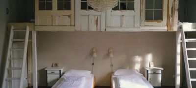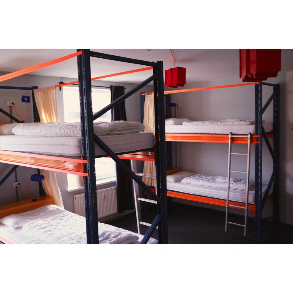 Das Hostel befindet sich in einem original DDR-Flachbau, der in den 50er Jahren als Lehrlingswohnheim gebaut wurde und vor unserer Eröffnung fast 20 Jahre leer stand. Mit Hilfe von Freund_innen und den Künstler_innen konnten wir hier mit großem Ideenreichtum und Liebe zum Detail unser Eden realisieren.