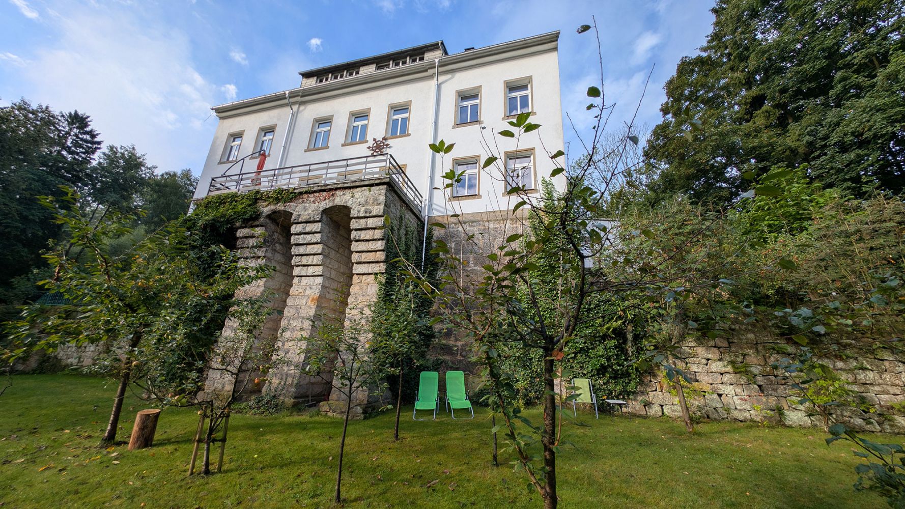 • Außenbereich: Terrasse mit Elbblick, weitläufiger Garten, Quellwasserbecken und Finnische Sauna (Nutzung gebührenpflichtig!)