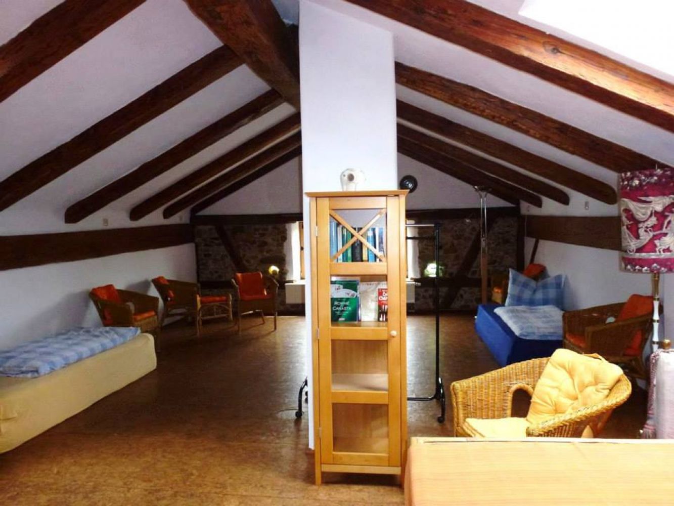 Zwei wunderschöne Seminarräume Das Haus bietet zwei wunderschöne Seminarräume mit hochwertiger Ausstattung. Der große Raum mit 72qm verfügt über einen Steinfussboden mit Fußbodenheizung. Zur Verfügung stehen Stereo-Anlage mit 2 CD Playern, Mikrofon, Mischpult, Flipchart, Meditationsmatten- und Kissen, Stühle sowie einen Beamer.