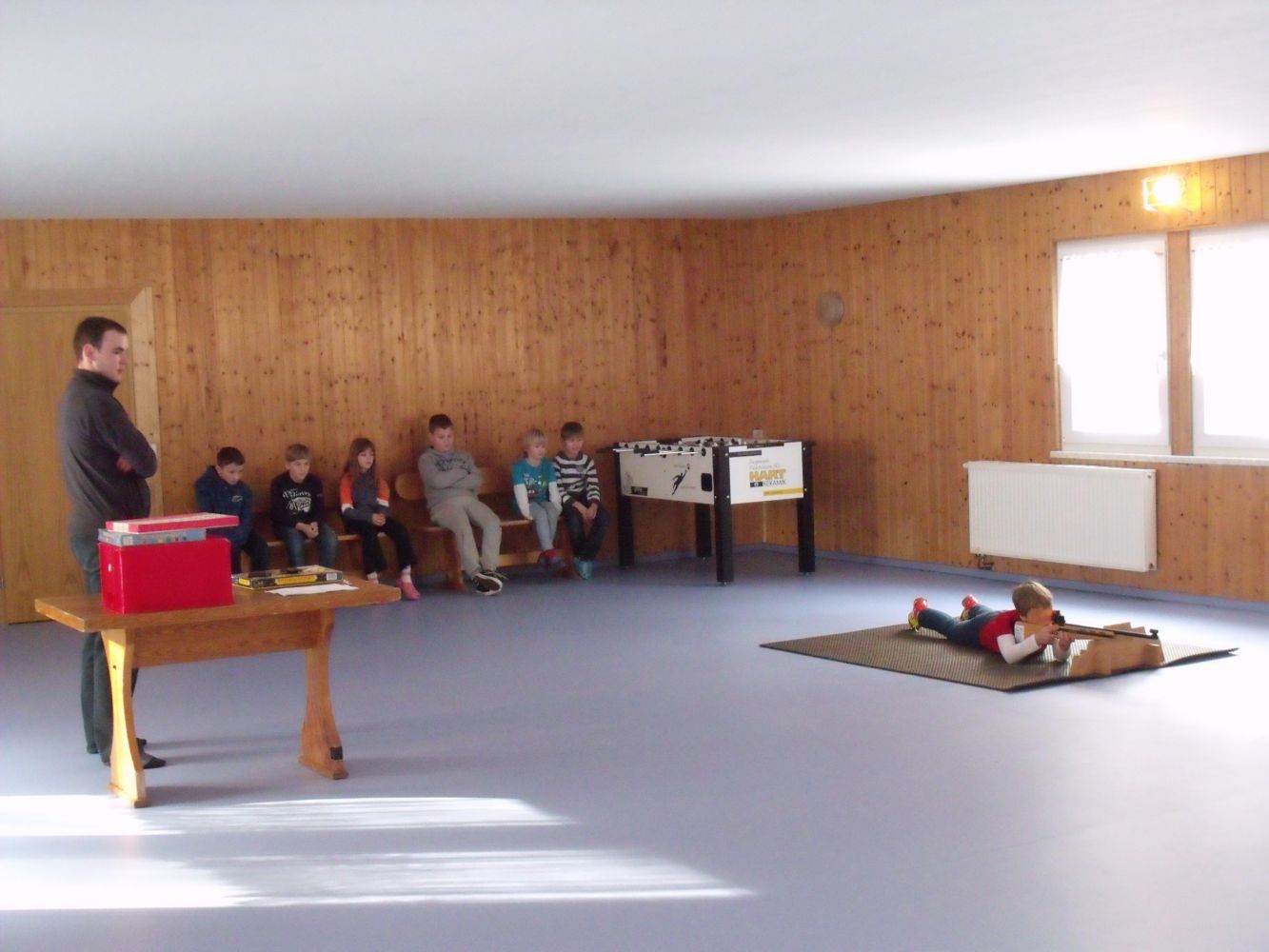Der Sport- und Mehrzweckraum im SLH Limbach ist unser größter Raum im Schullandheim.Er eignet sich für Proben und Training von Tanz-, Sport-, Musik und Theatergruppen und kannbei Bedarf auch für Beratungen und Vorträge bestuhlt werden.