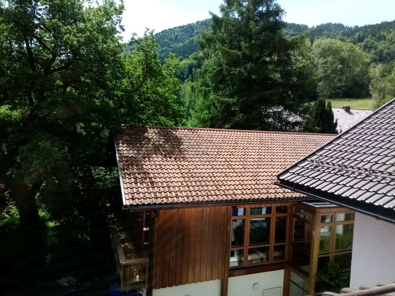 Der kleine Seminarraum im Dachgeschoss beeindruckt durch die offenliegenden Deckenbalken und die ruhige Ausstrahlung. Der Boden ist durchgehend mit hellem Schurwollteppich belegt. Der Raum kann bei großen Gruppen (wenn alle anderen Zimmer belegt sind) als Schlafsaal genutzt werden. Mit Japanstellwänden können diskrete Bereiche in den geräumigen Dachgauben abgeteilt werden.