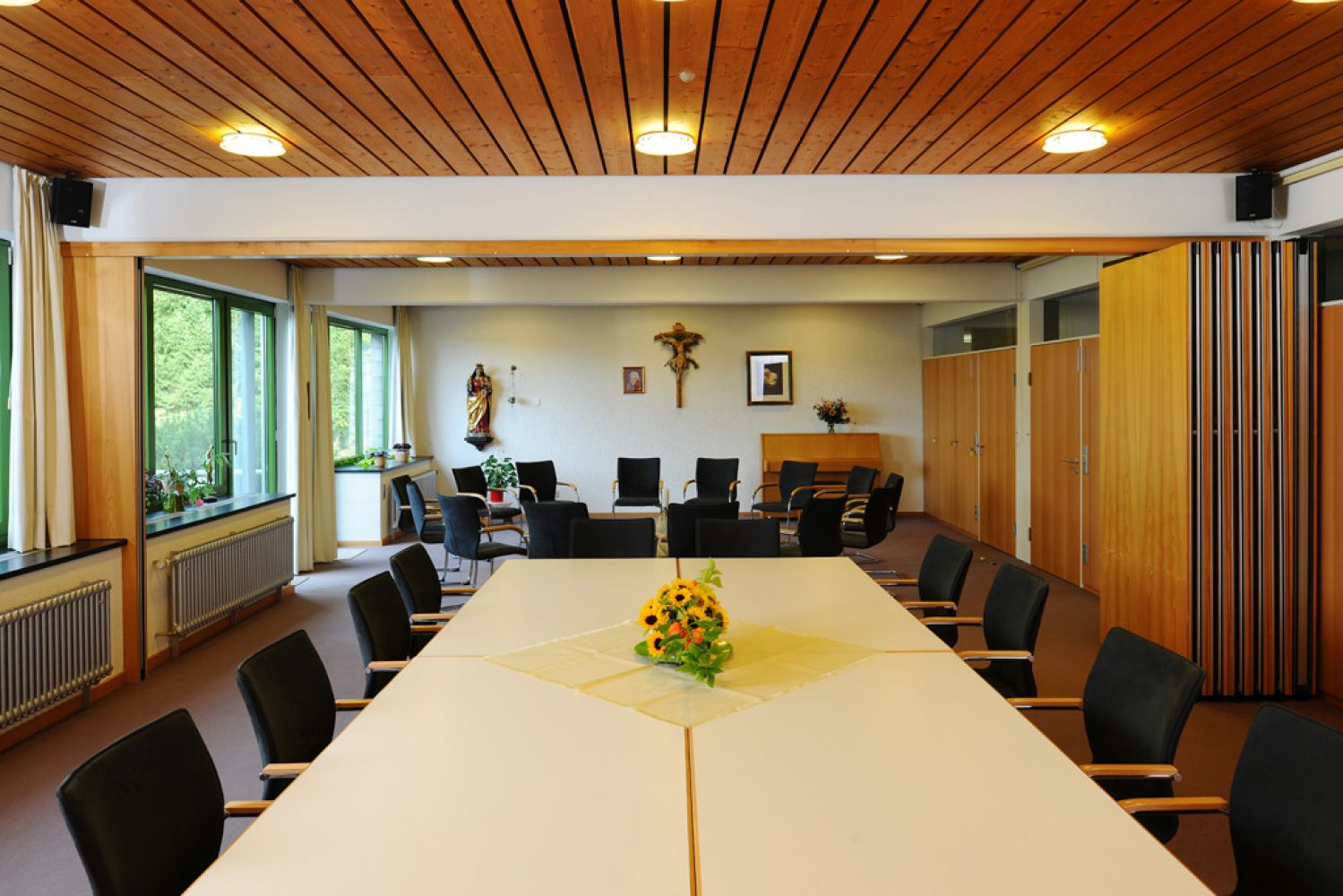 Der Tagungsraum Vortragssaal bietet Platz für bis zu 60 Personen bei einer Fläche von 90 qm. Der Saal kann geteilt werden - je 45 qm für 2 Gruppenräume.