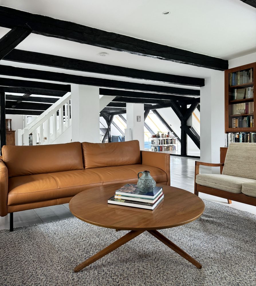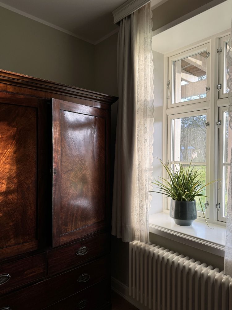 Die Einrichtung kombiniert restaurierte Antiquitäten mit modernen Klassikern und schafft so ein wohnliches, zugleich stilvolles Ambiente. Für Familien ist außerdem das große Spiel- und Kinderzimmer ein Highlight – ausgestattet mit Puppenhaus, Spielküche, Lego, Playmobil und Holzspielzeug.