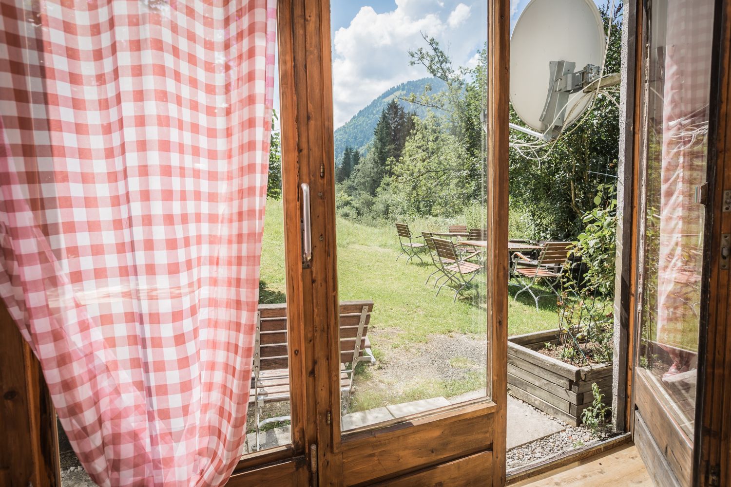 Mitten im Landschaftsschutzgebiet und direkt am Gebirgsfluss Trettach, aber nur 30 Gehminuten von Oberstdorf (Bahnhof) entfernt befindet sich das Landhotel Gruben mit Cafe und herrlichem Ausblick auf die Trettachspitze.