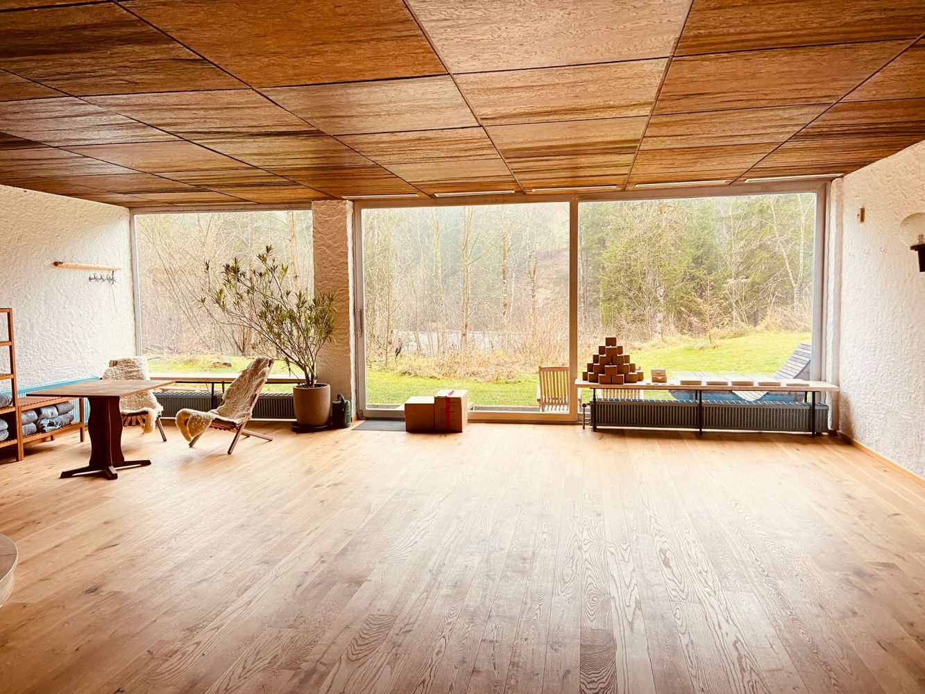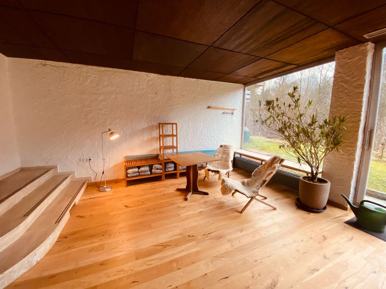 Unser Seminarraum ( 75 qm ) mit Naturholzboden, Terrasse und eigenem Garten am Fluss ist sehr hell und dank großer Schiebetüren direkt mit dem Garten verbunden. Im großen Garten mit eigenem Bachlauf sind unsere Seminargäste ungestört und nur vom Rauschen des Wassers umhüllt.