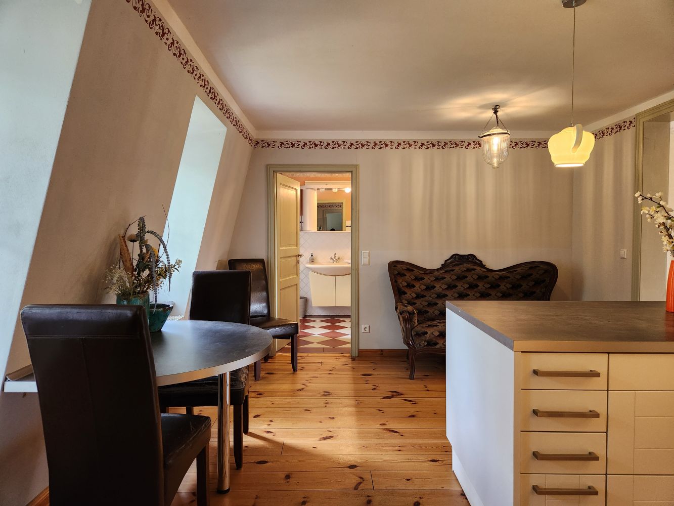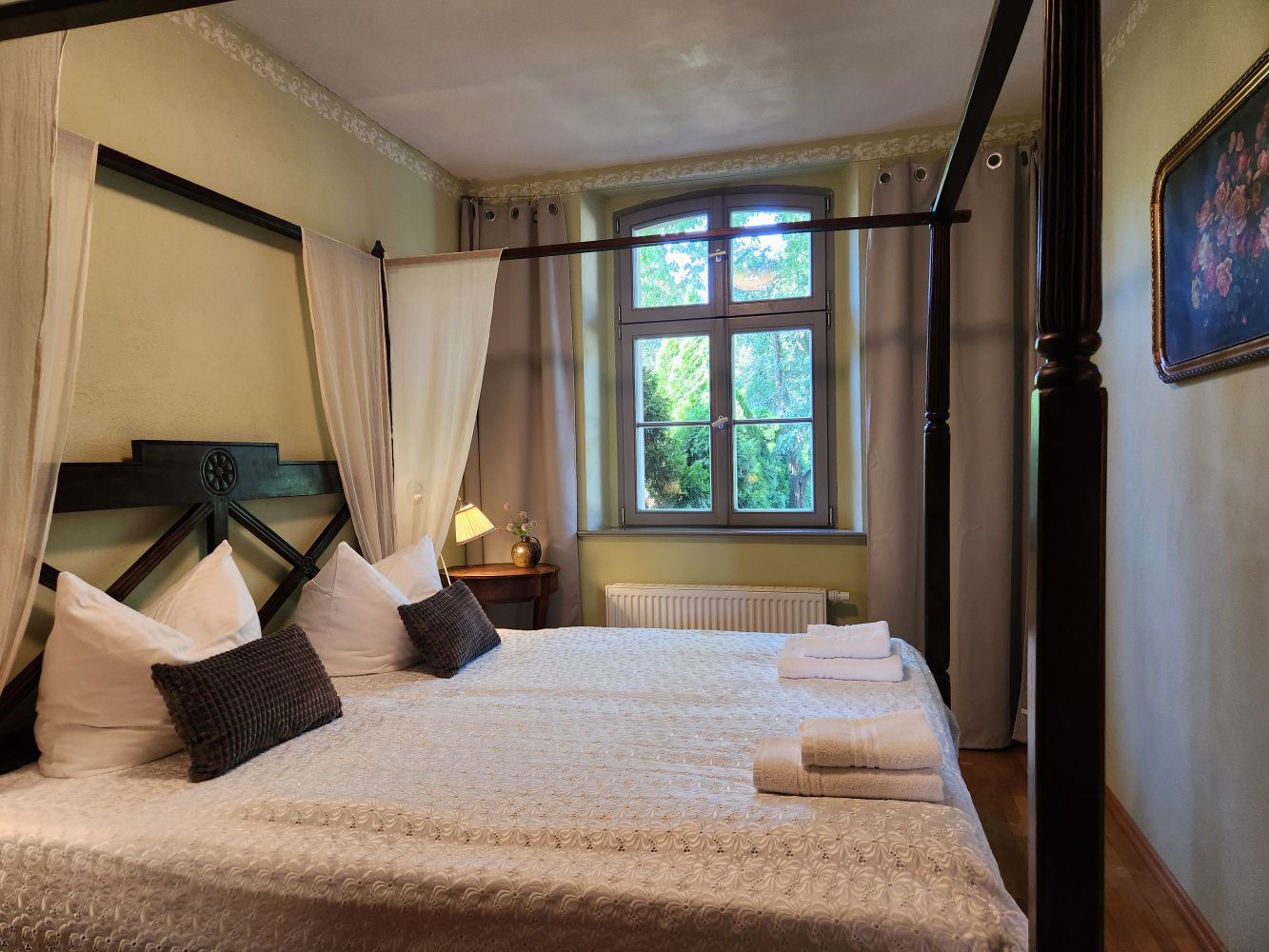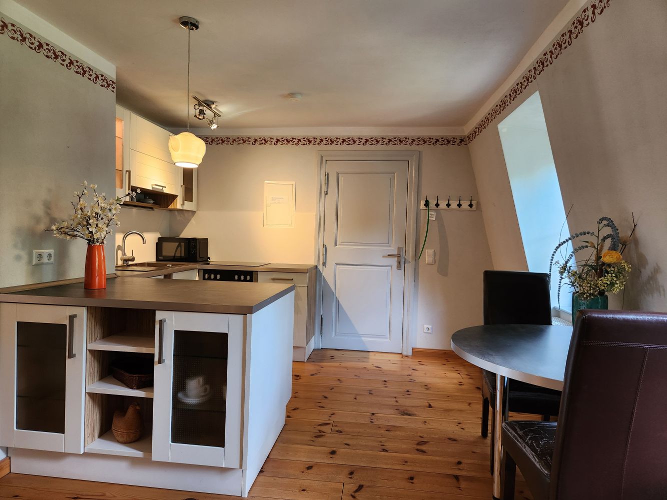 Im historischen Haupthaus befinden sich 4 Ferienwohnungen mit Wohn- , Ess- & Schlafzimmer, sowie Küche & Bad. Die "Neue Remise", ein ökologischer Holzbau bietet in vier Apartments je zwei (zweimal auch 4 ) Personen Platz. Alle Zimmer sind mit Dusche bzw. Bad, WC, TV und Küchenzeile ausgestattet. Das Ferienhaus verfügt über 4 Räume für max.10 Prs.. Die 4 großen Ferienwohnungen haben je ein Schlafzimmer (ein Doppelbett) und Aufbettungen für 3 Personen im Wohnzimmer)