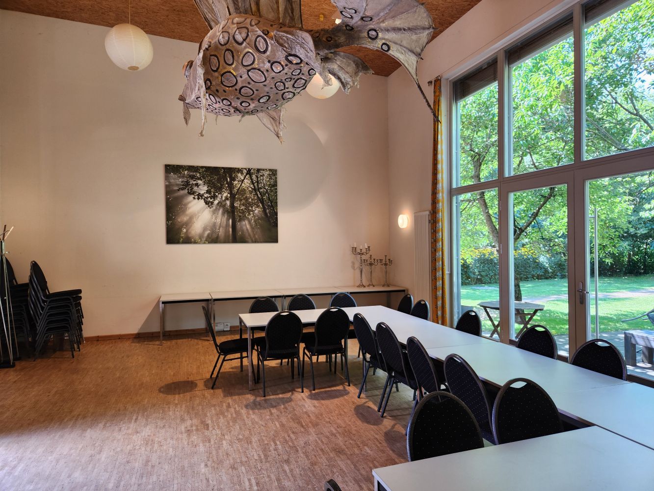Ein modrne Festaalbietet Raum für diverse Seminare, Tanzmöglichkeiten, Yoga, Meditation und verschiedenste Feierlichkeiten...Bis zu 50 Personen finden hier Platz. Dementsprechend sind genügend Tische und Stühle und eine kleine Küche mit voller Ausstattung für diverse Veranstaltungen vorhanden. Extra Sanitäreinrichtungen stehen zur Verfügung.