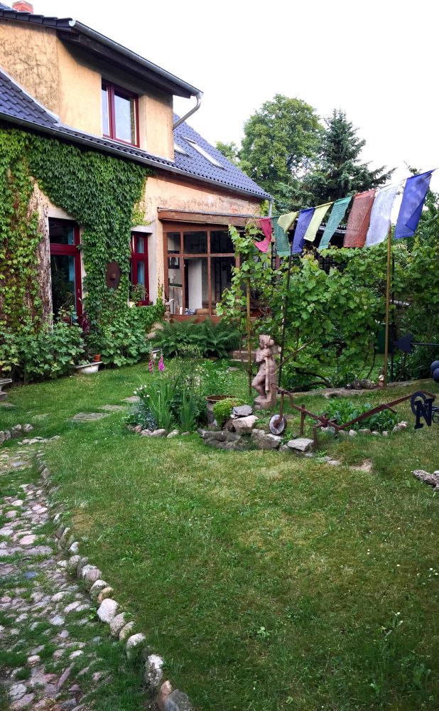 Ankommen und genießenStilvoll renovierte Mehrbettzimmer, zum Teil mit antiken asiatischen Möbeln ausgestattet, bieten maximal 16 Gästen Platz. Eine große Tafel im Eßraum, oder in der warmen Jahreszeit auch die Veranda oder der Garten laden ein zum gemeinsamen Essen und Austausch. Der Seminarraum (50qm) verfügt über einen Holzboden, große Fenstertüren zum Garten, Musikanlage, Sitzkissen und Decken.. Die vegetarische Küche mit Kräutern, Früchten und Gemüse aus dem eigenen Garten ist ein besonderes Highlight. Wir bewirtschaften den Garten biologisch.