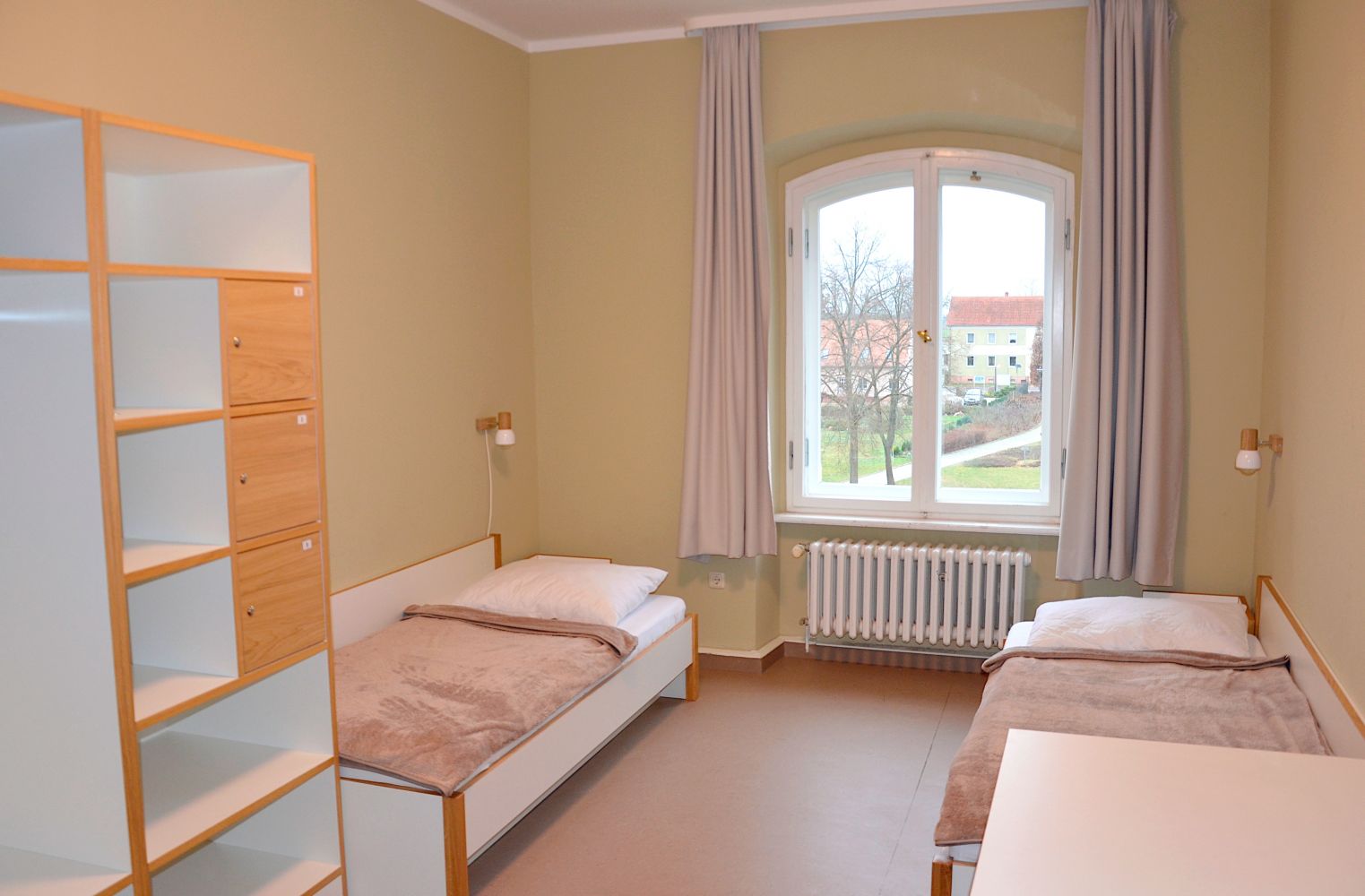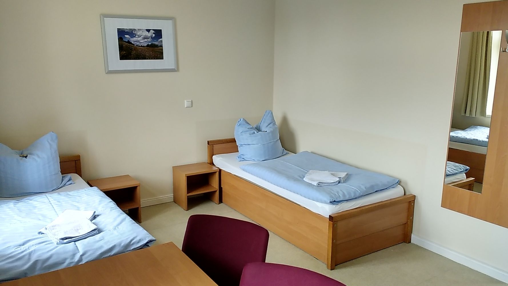 Unsere Zimmer sind zweckgemäß und gleichzeitig ansprechend eingerichtet. Im Schloss haben in 2- bis 4-Bett-Zimmern mit Dusche und WC sowohl auf der Park- als auch der Hofseite 60 Personen Platz. In der Schmiede bieten 17 moderne Einzel- und Doppelzimmer mit insgesamt 25 Betten und eigenem Bad eine Unterkunft. Dort sind die Zimmer im Erdgeschoss barrierefrei und somit auch für Rollstuhlfahrer geeignet.
