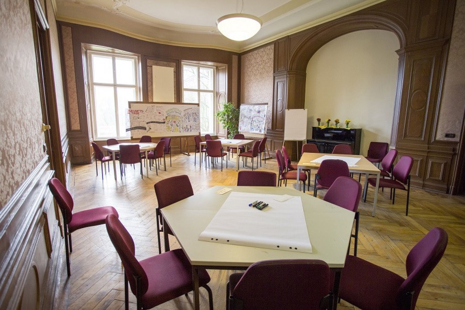 Ein Klavier und ein Flügel stehen zur Verfügung. Weitere Räume für die Gruppenarbeit können auf Anfrage dazu genommen werden.