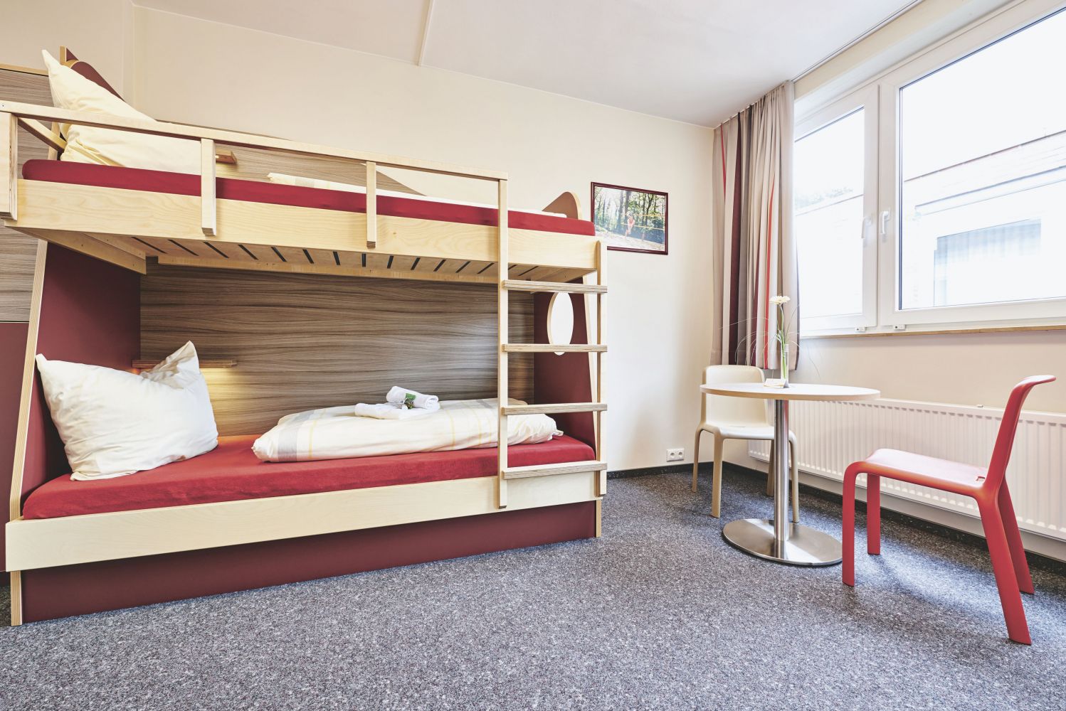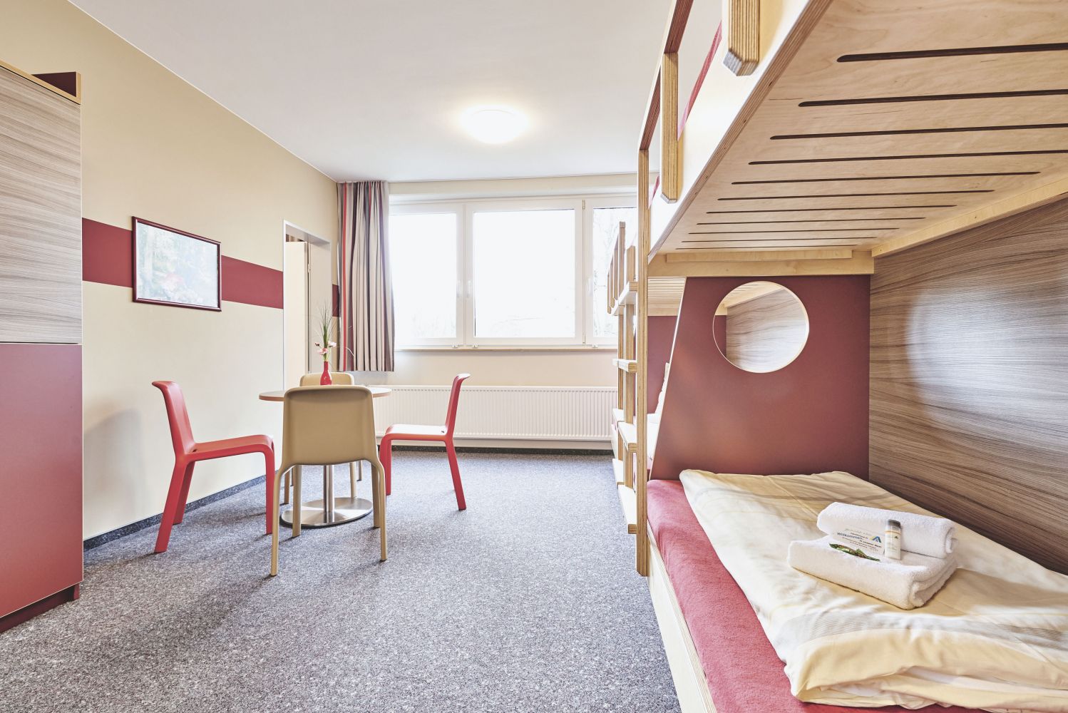 Dusche/WC, 3 Speiseräume, 7 Freizeit- und Seminarräume (bis 80 Personen), Aula (bis 200 Plätze). Natürlich können unsere Mehrbettzimmer auch als Doppelzimmer gebucht werden.