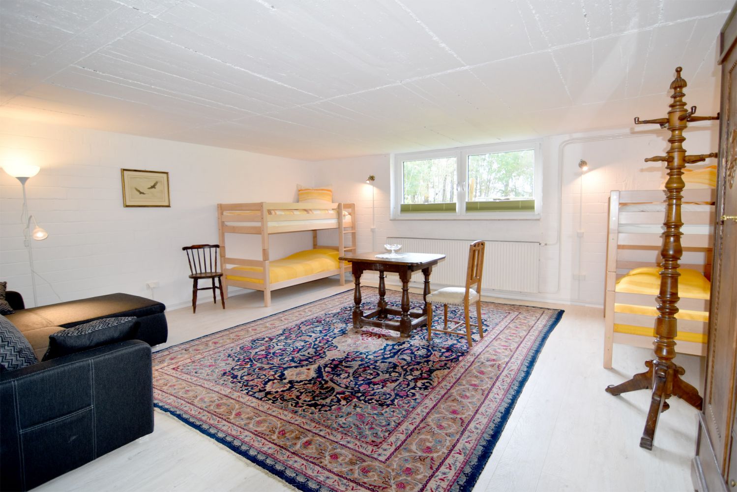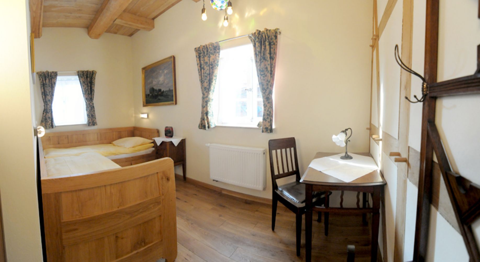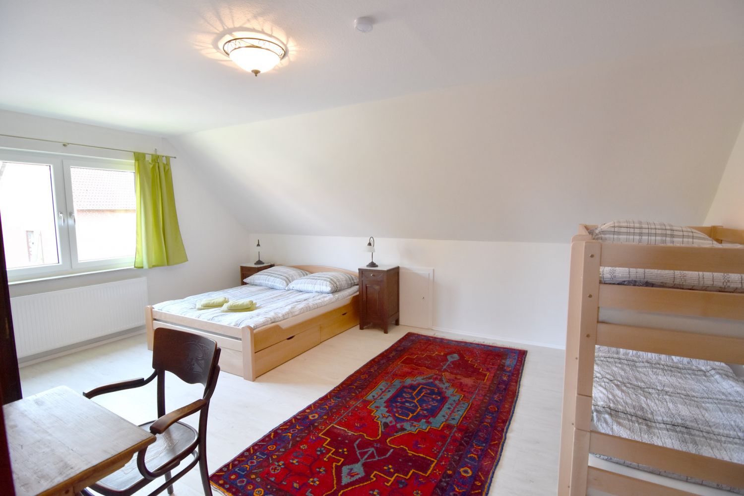 Auf dem Ferienhof sind alle Räumlichkeiten im schönen Jugendstil eingerichtet. Im Gruppenraum ist ein Kaminofen für gemütliche Abende. Die angrenzenden DZ sind mit 2 Einzelbetten, Kommode und Schreibtisch ausgestattet. Die Bäder haben barrierefreie Duschen, unterfahrbare Waschbecken und Haltegriffe. Diese Ausstattung gilt auch für die Wohnung im 1. OG. Die Apartments im 2. OG bieten gemütliche Übernachtungen für 2 Personen. Zustellbett/Kinderbett möglich. Im Seminarhaus auf der gegenüberliegenden Straßenseite befinden sich im 1.OG 5 Zimmer mit insgesamt 8 Betten. Jedes dieser Zimmer verfügt über ein Bad mit Dusche und WC. Der angrenzende Gruppenraum kann zum Spielen und Verweilen genutzt werden. Im Waldhaus stehen 20 Schlafmöglichkeiten zur Verfügung. 2 Doppelzimmer / 1 Dreibettzimmer / 2 Vierbettzimmer sowie 3 Schlafsofas in den Wohnzimmern. Auf jeder Etage befindet sich ein Bad mit Dusche bzw. Wanne und WC. Das Bad im EG ist barrierefrei. Zusätzlich gibt es ein Gäste WC im EG. Die Zimmer sind mit Doppelbetten, Einzelbetten oder Etagenbetten ausgestattet.