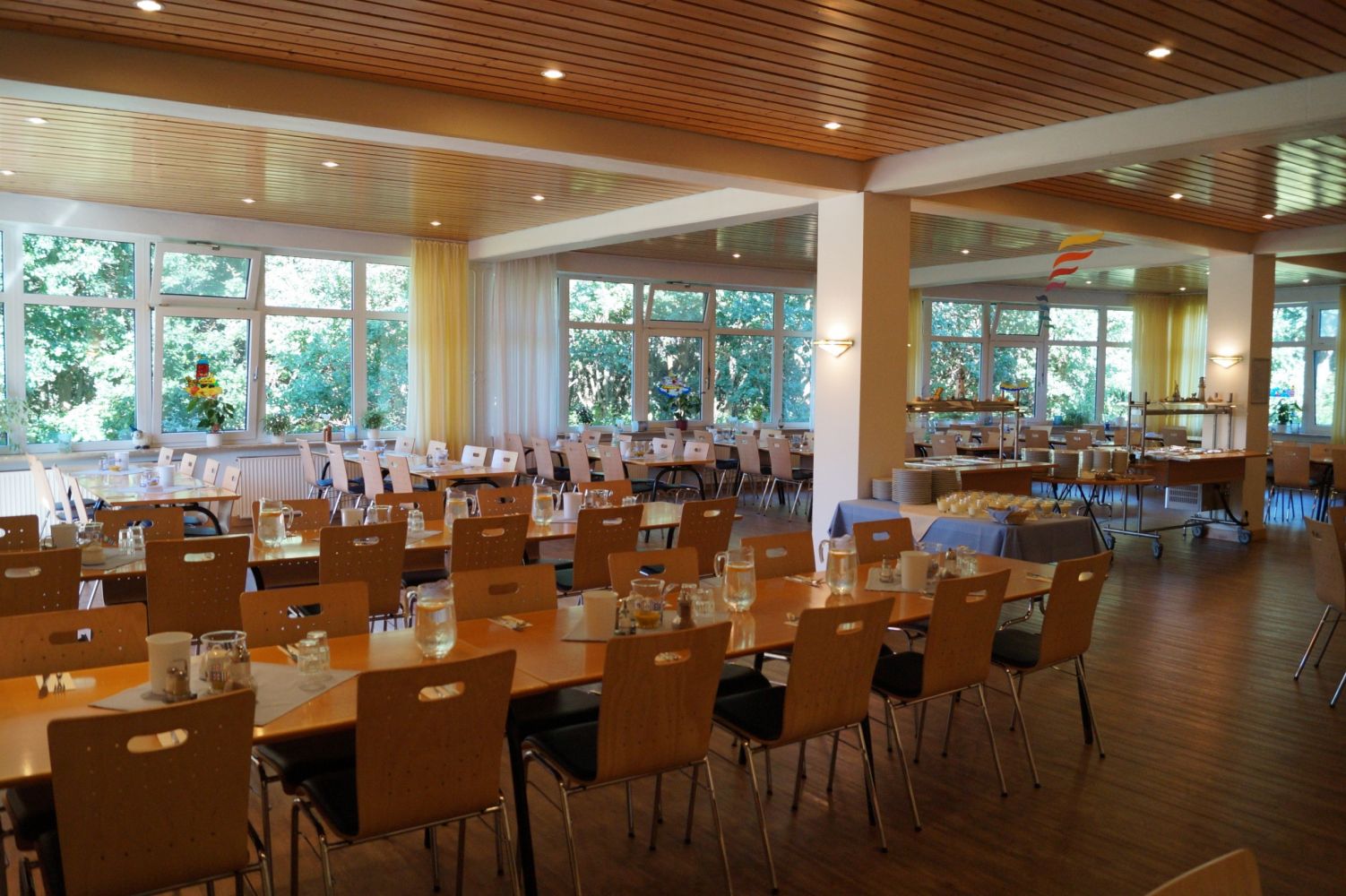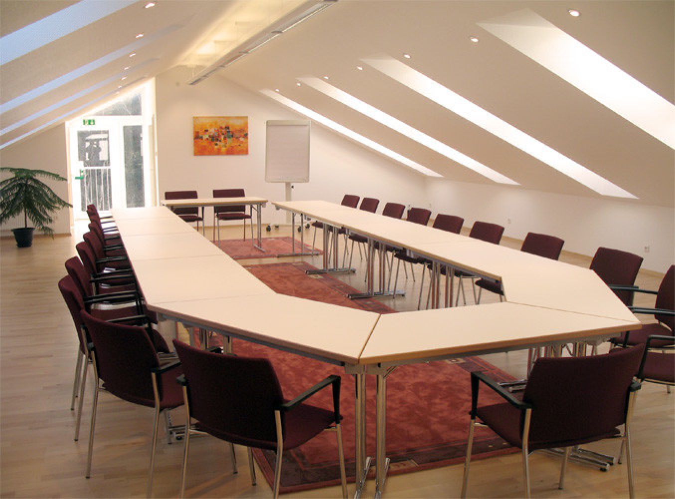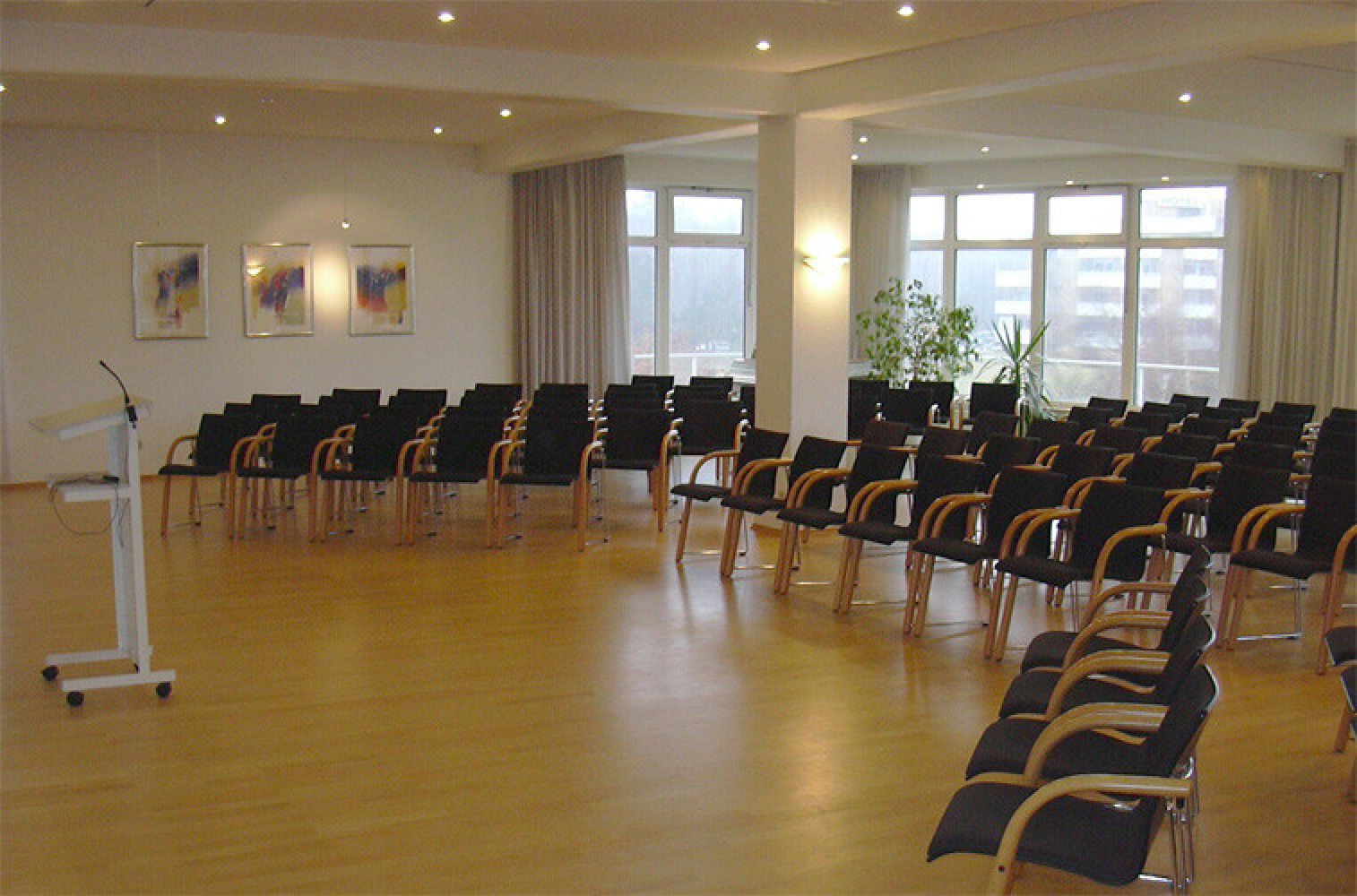 Umfangreiches RaumangebotSeminargäste und Gruppen finden in unserem Haus ein umfangreiches Raumangebot in hellen und freundlichen Räumen mit bis zu 180 qm. Fast alle Räume sind verdunkelbar und somit auch für Präsentationen gut geeignet. Für die Durchführung von Seminaren steht unsere umfangreiche Seminartechnik (Beamer, DVD, CD, Moderationskoffer, Stellwände und Flipcharts) zur Verfügung. W-LAN (bis zu 100 Mbps) ist in allen Hausbereichen kostenfrei nutzbar.