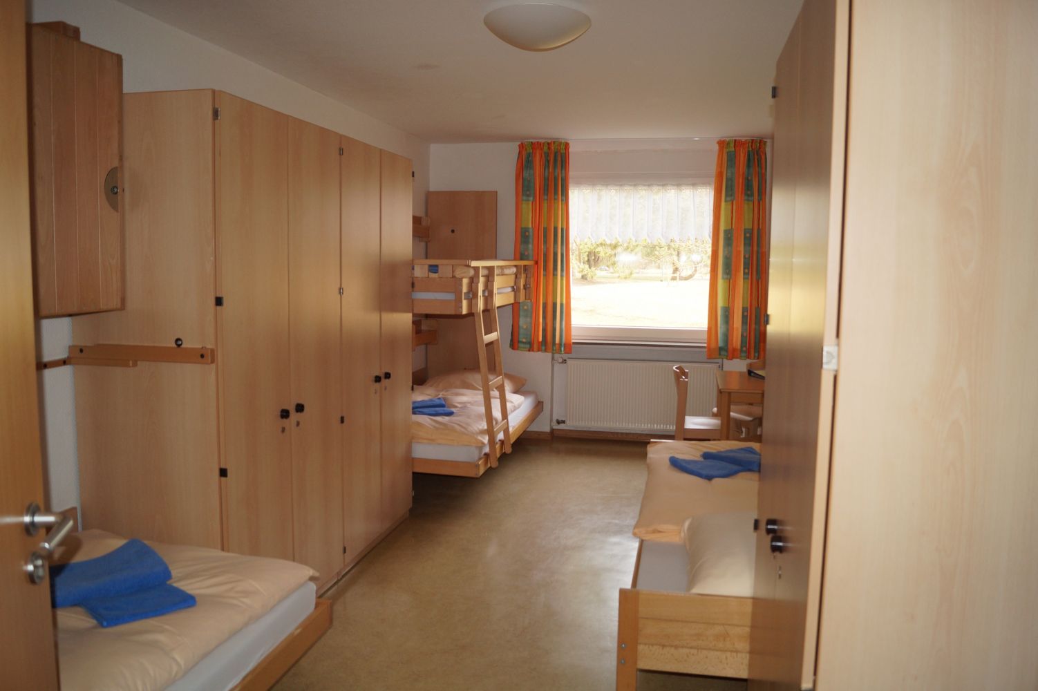 Alle anderen Zimmer sind mit Waschbecken ausgestattet und modern eingerichtet. Einzelduschen und Toiletten - auch behindertengerecht - befinden sich in ausreichender Zahl auf den Etagen. Dieser Hausbereich ist besonders für Seminar- und Erwachsenengruppen geeignet. Haus 2 bietet insgesamt 7 DZ und 16 Mehrbettzimmer (3-5 Betten). Zwei DZ verfügen über ein eigenes Bad, alle anderen über ein Waschbecken. Einzelduschen und Toiletten befinden sich in ausreichender Zahl auf den Etagen, im EG ist zusätzlich ein barrierefreies Bad. Dieser Bereich eignet sich besonders gut für Familien- und Kindergruppen oder für Schulklassen.