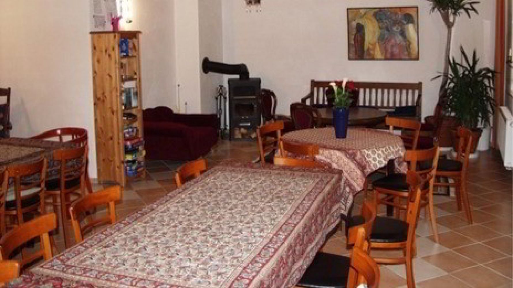 Dazu verfügt das Haus über 12 Duschen und eine ausreichende Anzahl Toiletten. Wir können Gruppen bis zu 60 Personen in Mehrbettzimmern (notfalls auf Matratzen im oberen Gruppenraum) unterbringen. Zusätzliche Einzelzimmer können in einer nahe gelegenen Pension (ca. 3 Auto-Minuten) bei Bedarf angemietet werden.