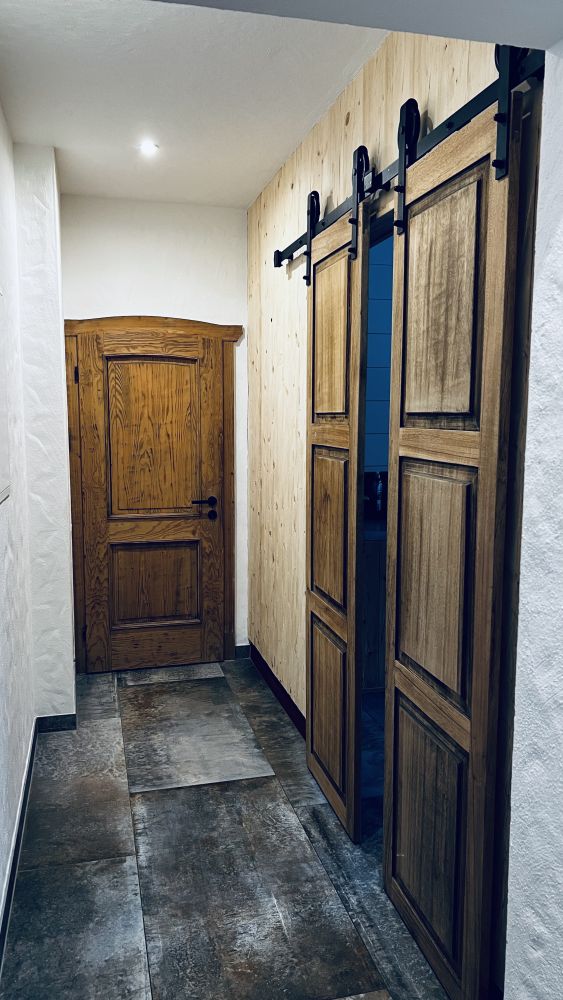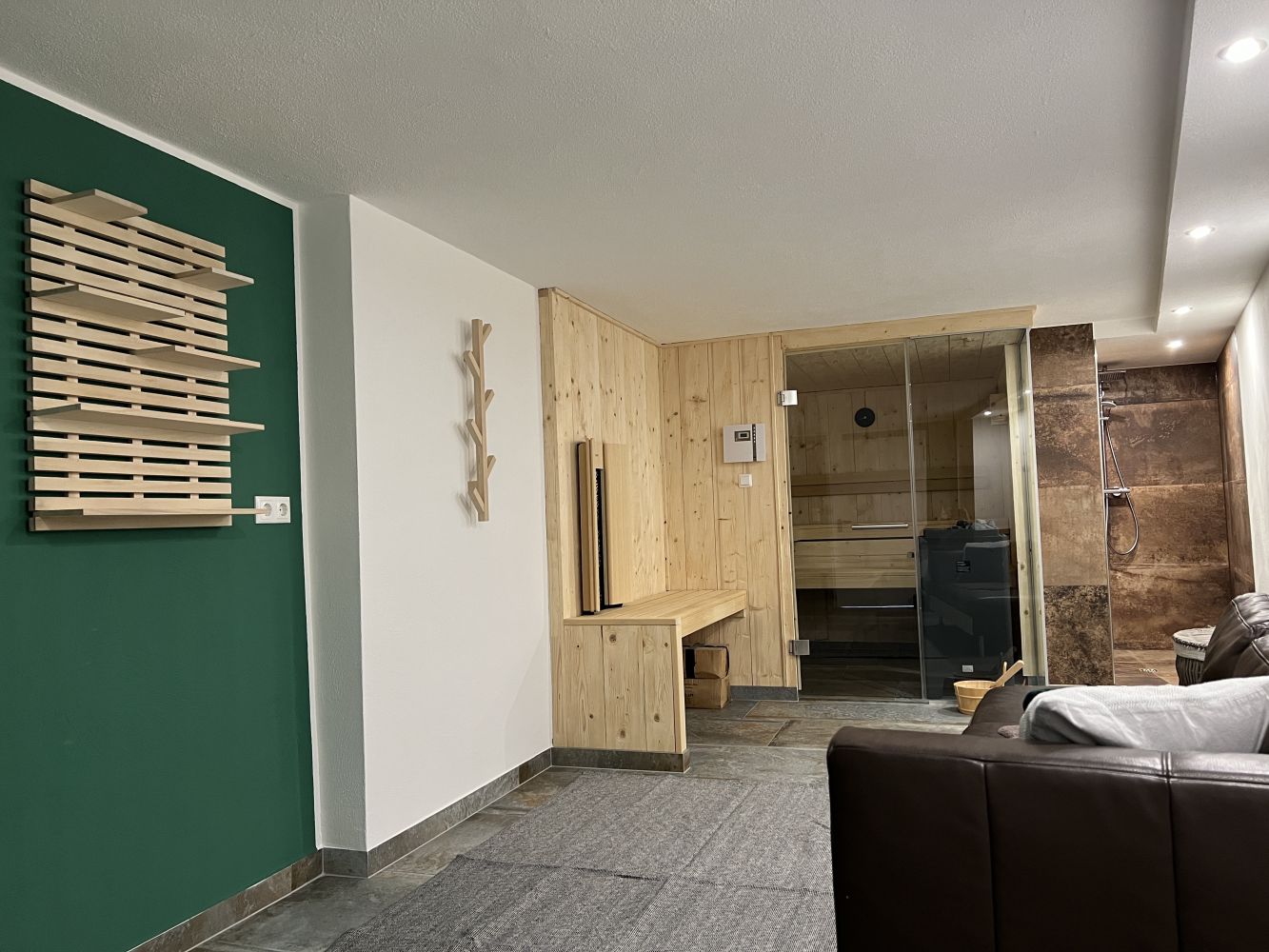 Zusätzlich stehen Ihnen eine private Sauna mit eigenem Duschbereich und gemütlichem Sofa im Untergeschoss zur Verfügung. Dieser Bereich kann nur von den Gästen des Seminarhauses "Nr. 36" genutzt werden. Der Zugang erfolgt über die Außentreppe am Hauseingang.
