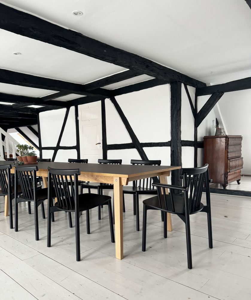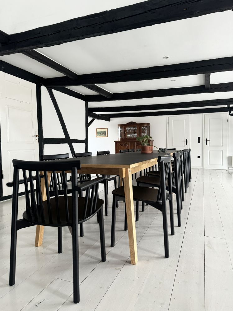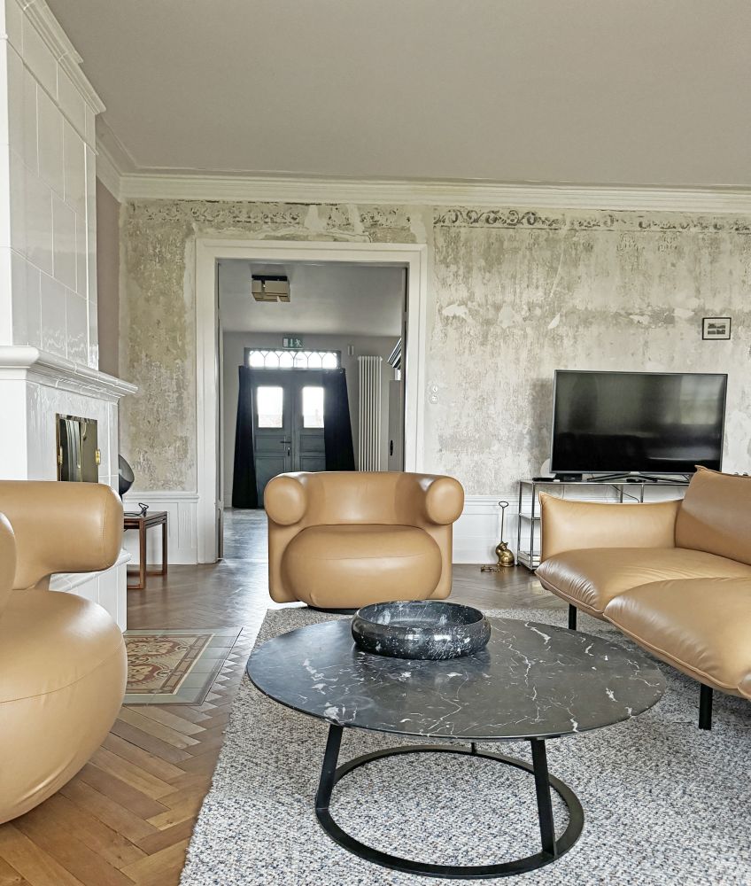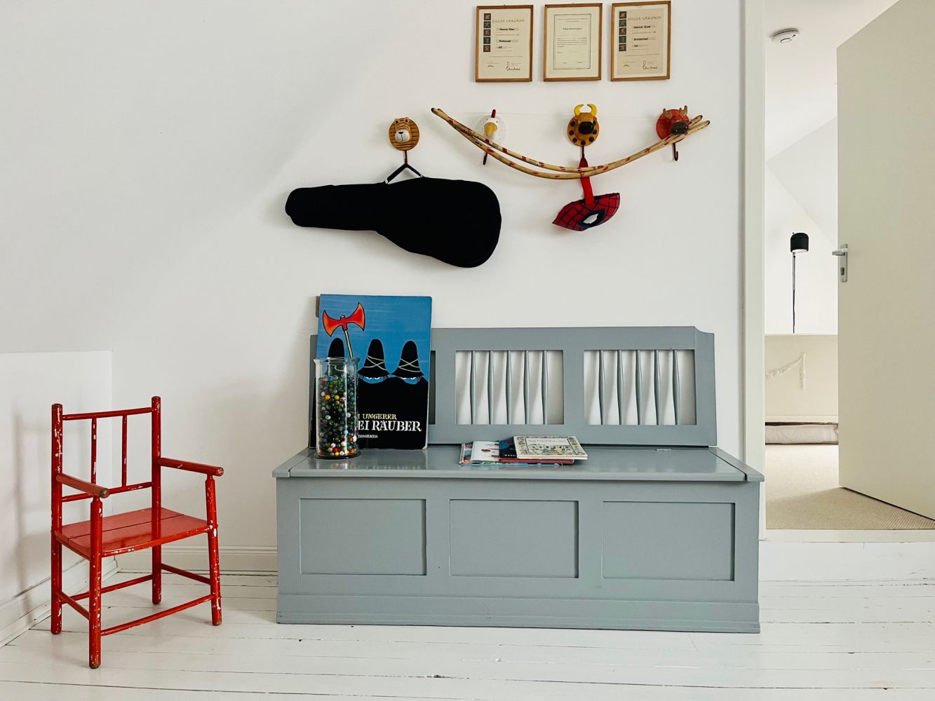 Die Einrichtung kombiniert restaurierte Antiquitäten mit modernen Klassikern und schafft so ein wohnliches, zugleich stilvolles Ambiente. Für Familien ist außerdem das große Spiel- und Kinderzimmer ein Highlight – ausgestattet mit Puppenhaus, Spielküche, Lego, Playmobil und Holzspielzeug.