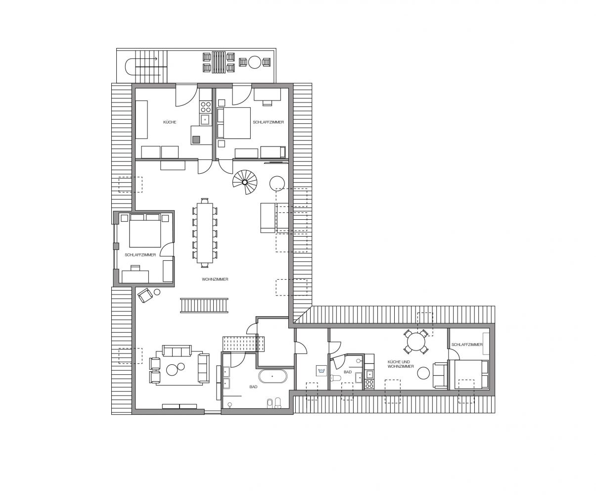 Sie können das gesamte Haus buchen oder auch nur eine der beiden Etagen – jede ist autark nutzbar.