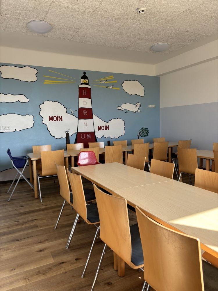 In wenigen Metern Entfernung bieten Fußball-, Spielplatz und Spielwiese Platz für Aktivitäten. Die Insel hält ein vielfältiges Angebot an Freizeit- und Bildungsprogrammen bereit. Dabei stehen insbesondere das Wattenmeer, die Natur und die Geschichte der Insel im Mittelpunkt. Aber auch Wassersport, wie Segeln und Surfen sind auf der Insel hoch im Kurs.