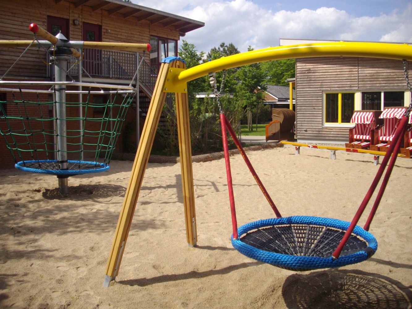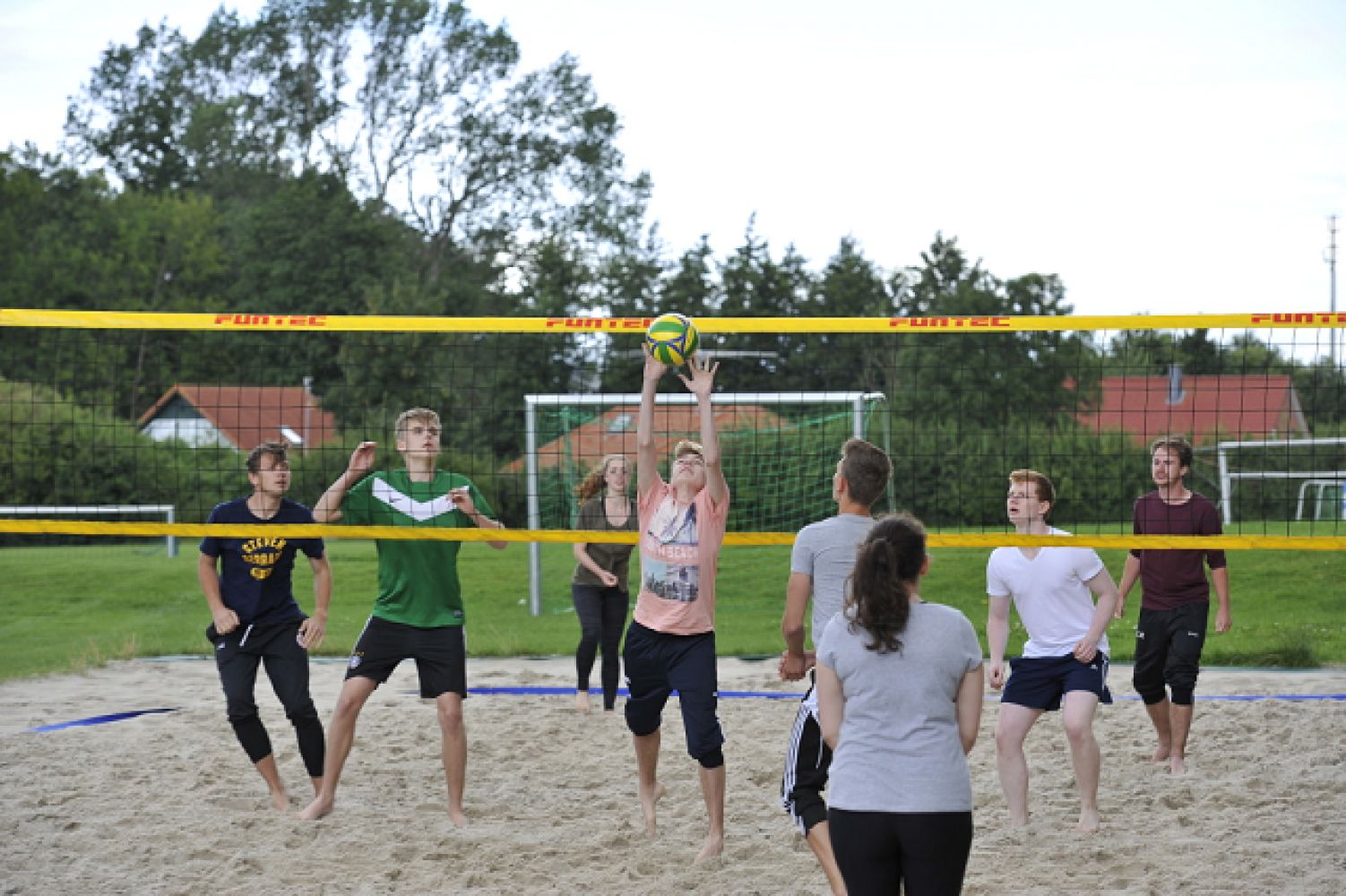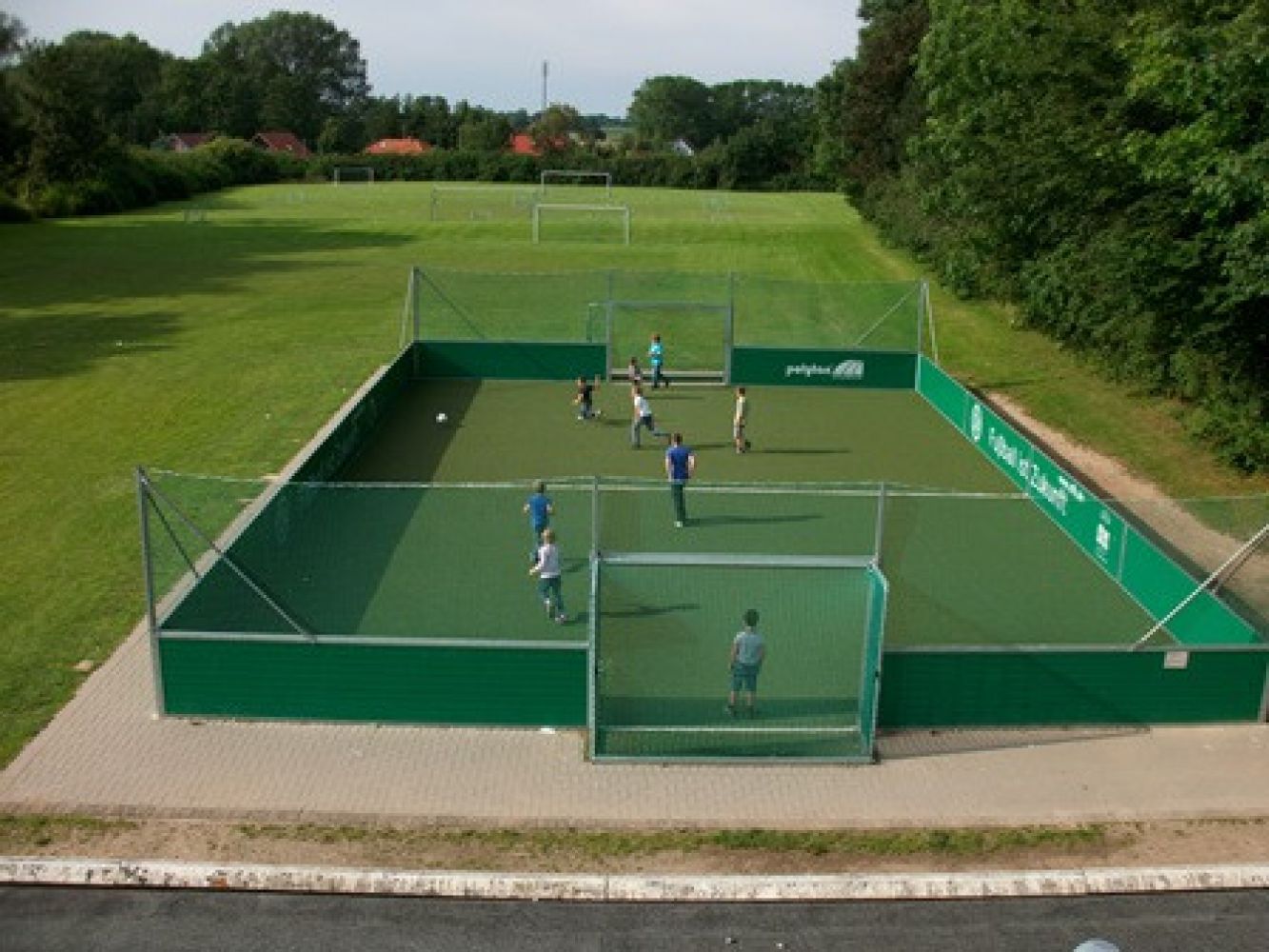 32.000 qm Außengelände mit div. Spiel- und Sportplätzen, DFB Minispielfeld (Kunstrasen), Beachvolleyballfeld, Lagerfeuer- u. Grillplatz, Tischtennis innen/außen, Außenschach, Fußball (Hütchen/Absperrband/Stangen vorhanden),