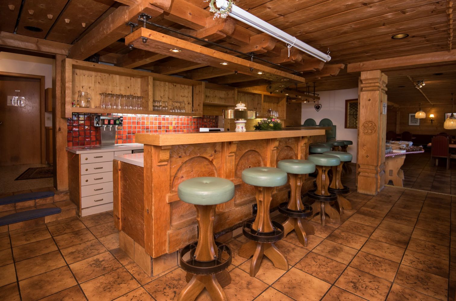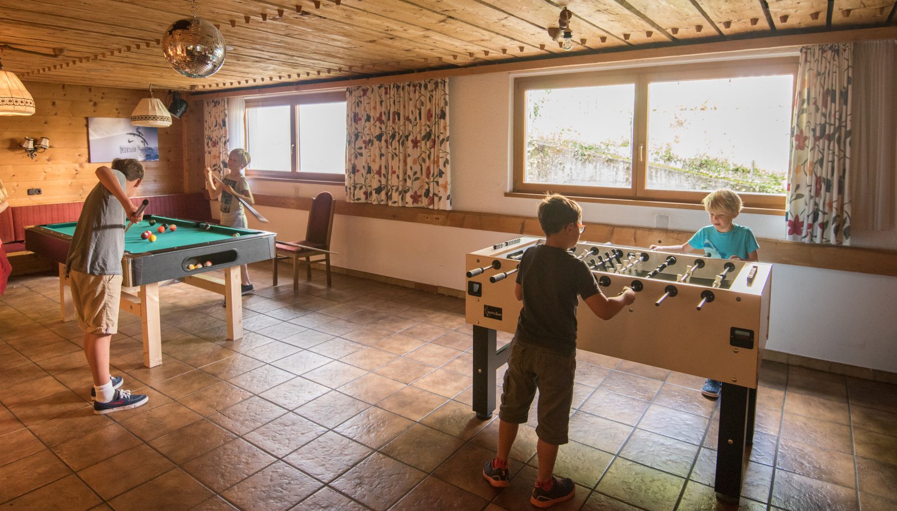 Das Haus Klein Tirol verfügt über einen Aufenthaltsraum mit Kicker, Tischtennisplatte und weiteren Spielen. Zudem gibt es einen großzügigen Speisesaal und einen Barbereich. Ein Beamer und eine Leinwand sind vor Ort und können im Aufenthaltsraum oder im Speisesaal aufgebaut werden.