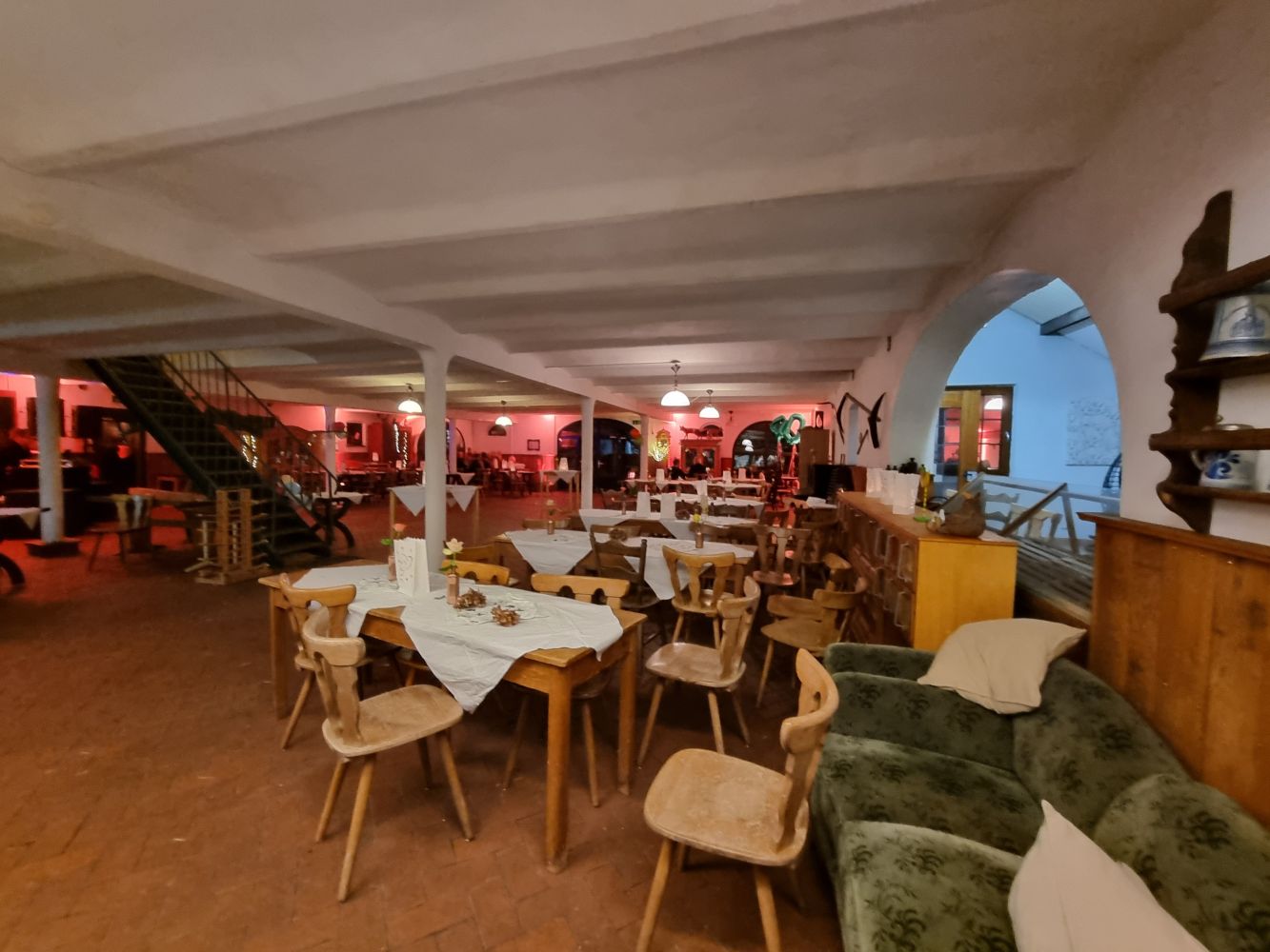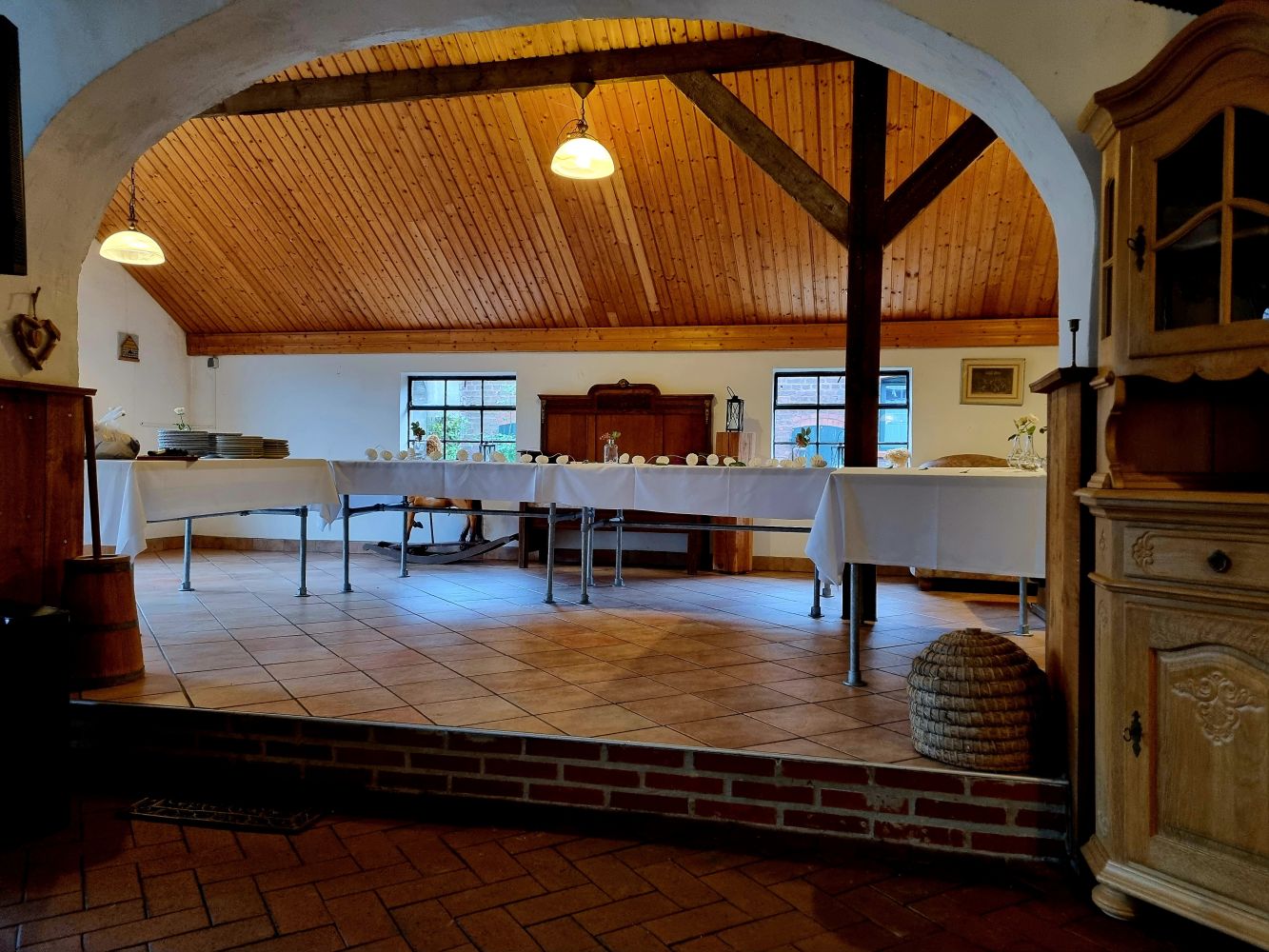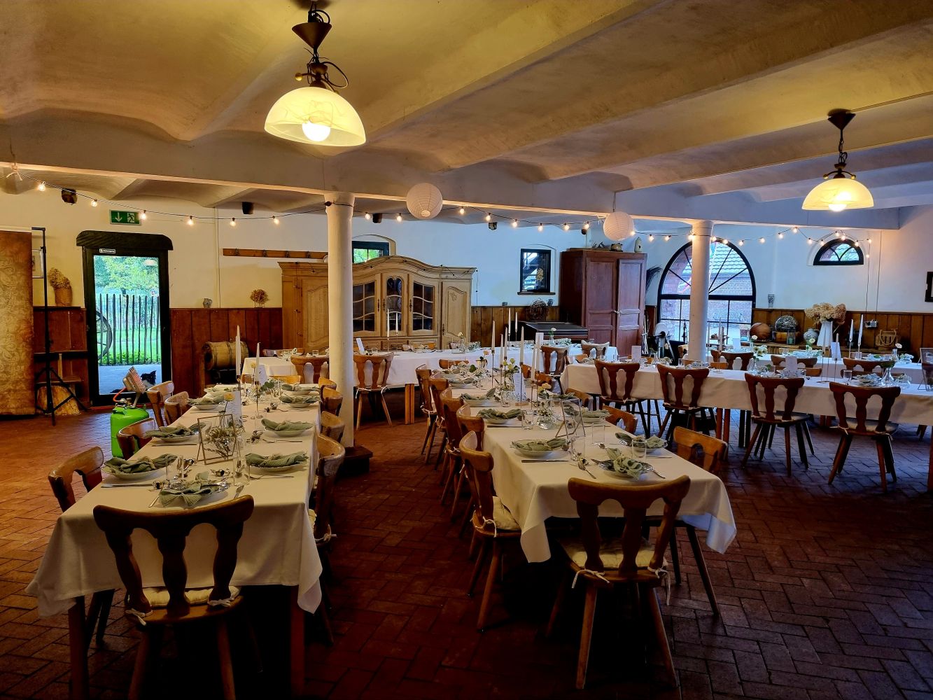 Großer Saal für bis zu 120 Personen inklusive Bestuhlung, Außenbestuhlung, Sanitäranlagen.