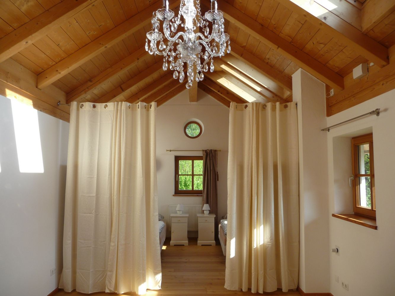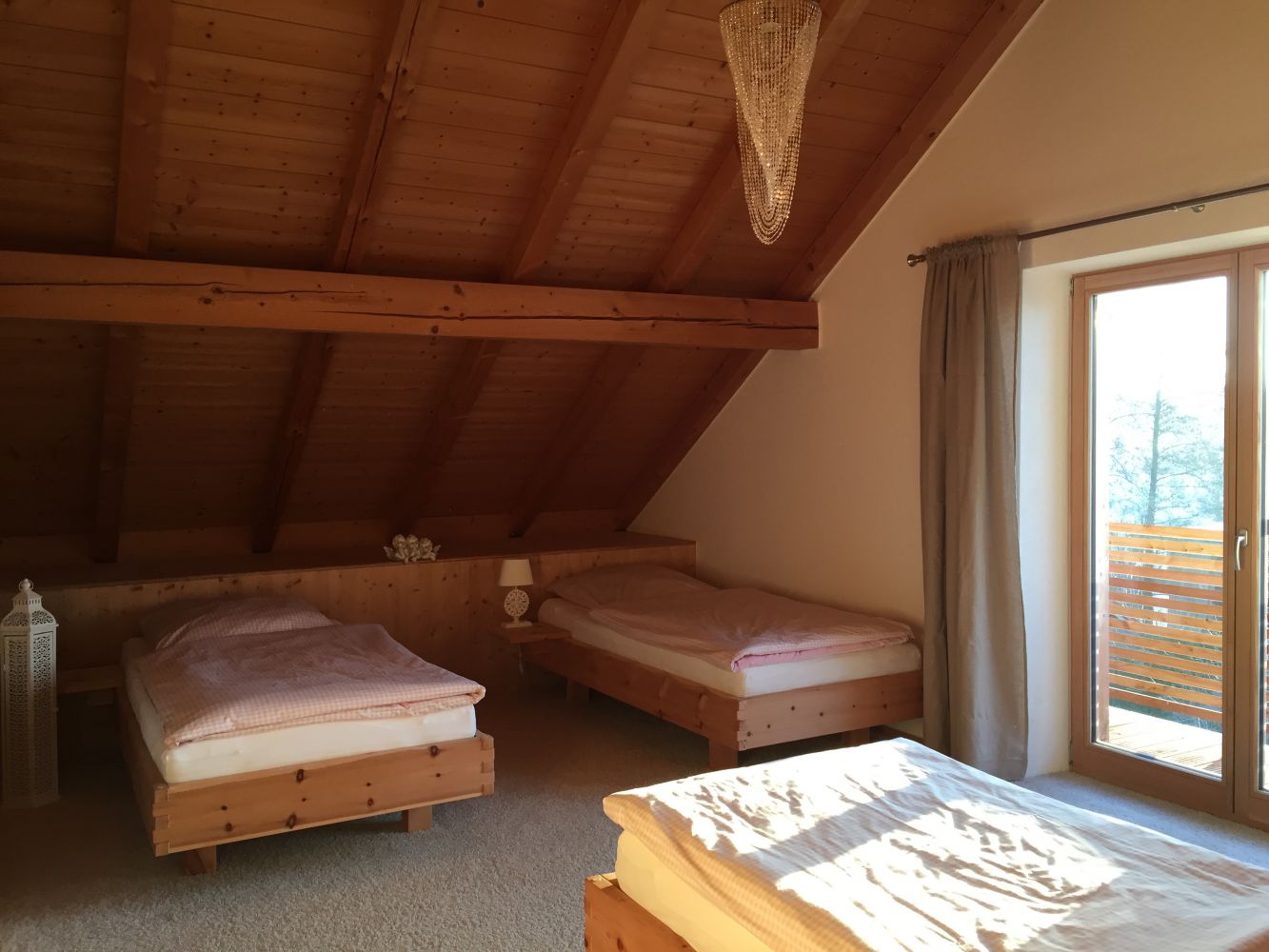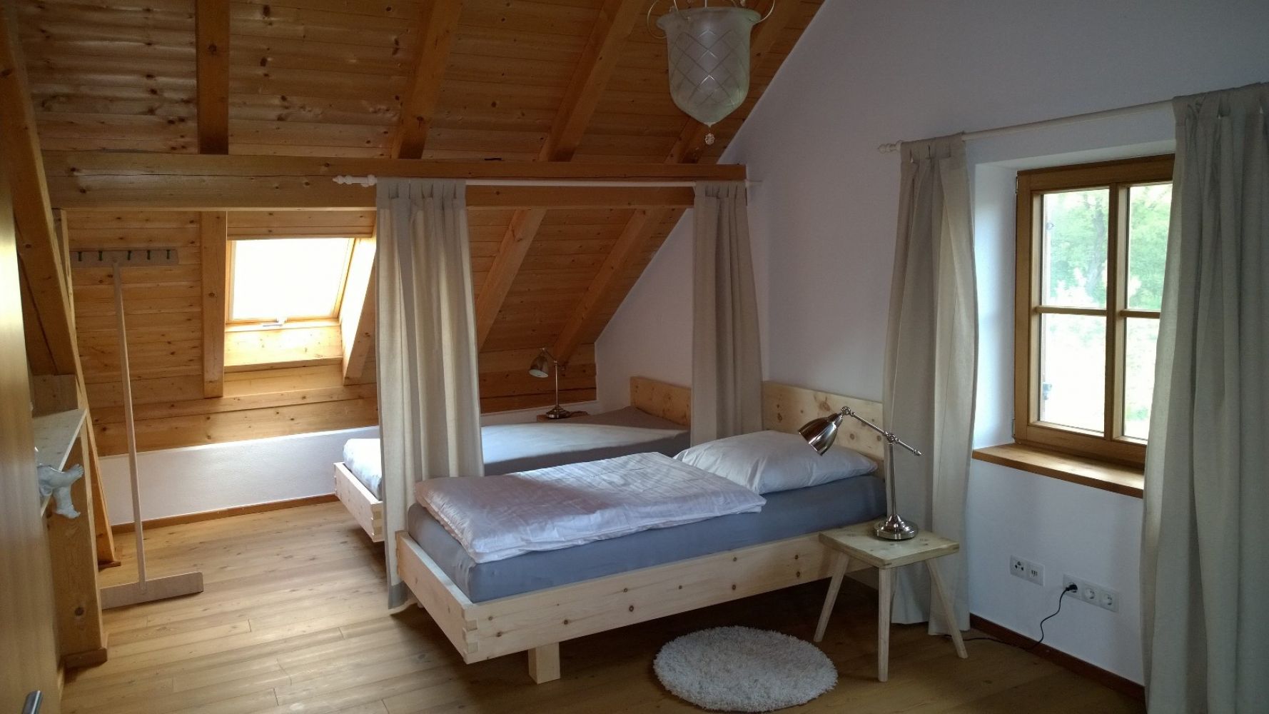 Zirben-Gemächer mit Flair. Im Sonnenhaus gibt es zwei 2-Bett-Zimmer (1. EG), ein 3-Bett-Zimmer und ein 4-Bett-Zimmer (2. EG). Dazu 3 Bäder in 3 Etagen sowie 4 Toiletten. Sie schlafen bei uns in hochwertigen, gesundheitsfördernden, wohl duftenden Zirben-Vollholz-Betten.