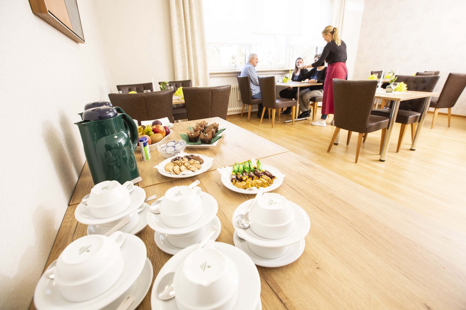 Lassen Sie sich von unserem frischen Buffet mit vegetarischer Auswahl verwöhnen. Auf Wunsch bieten wir auch gerne Schon- oder Diabetikerkost mit Menüwahl.