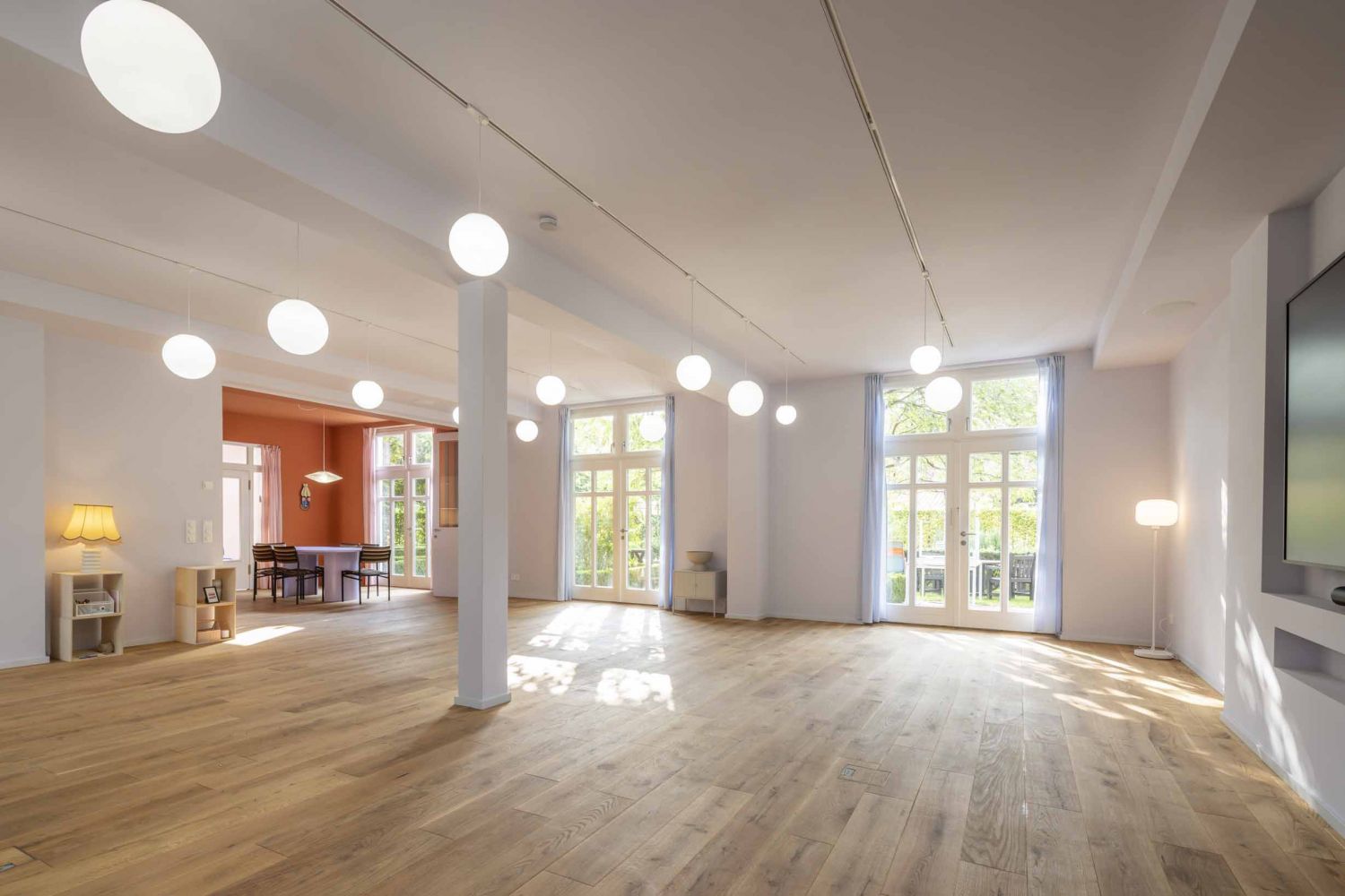 Der Salon Brando liegt im Erdgeschoß unseres Seminarhauses und hat einen eigenen Hof, in den man direkt vom Seminarraum gelangt und der sich wunderbar für Pausen eignet.