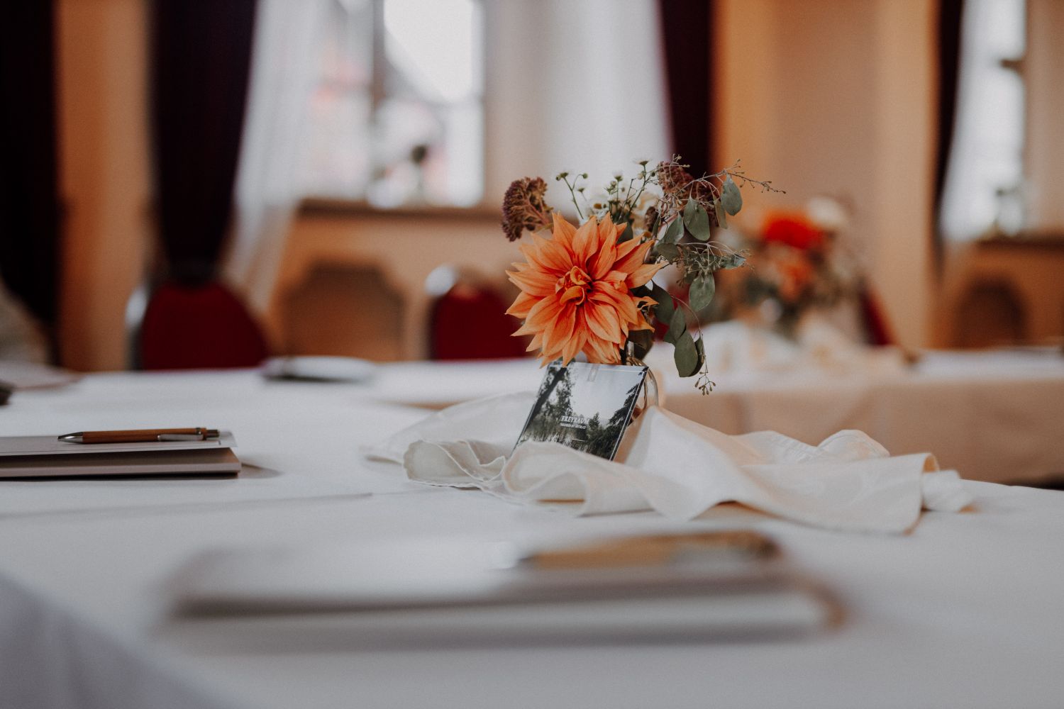 Ausgestattet mit stilechtem Mobiliar sind mehrere Tafelanordnungen und Tagungskonzepte möglich.