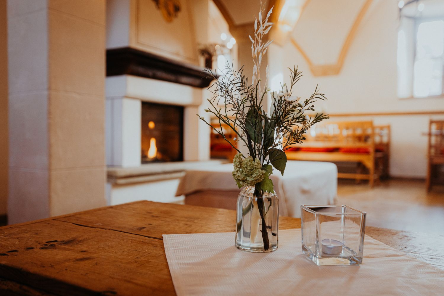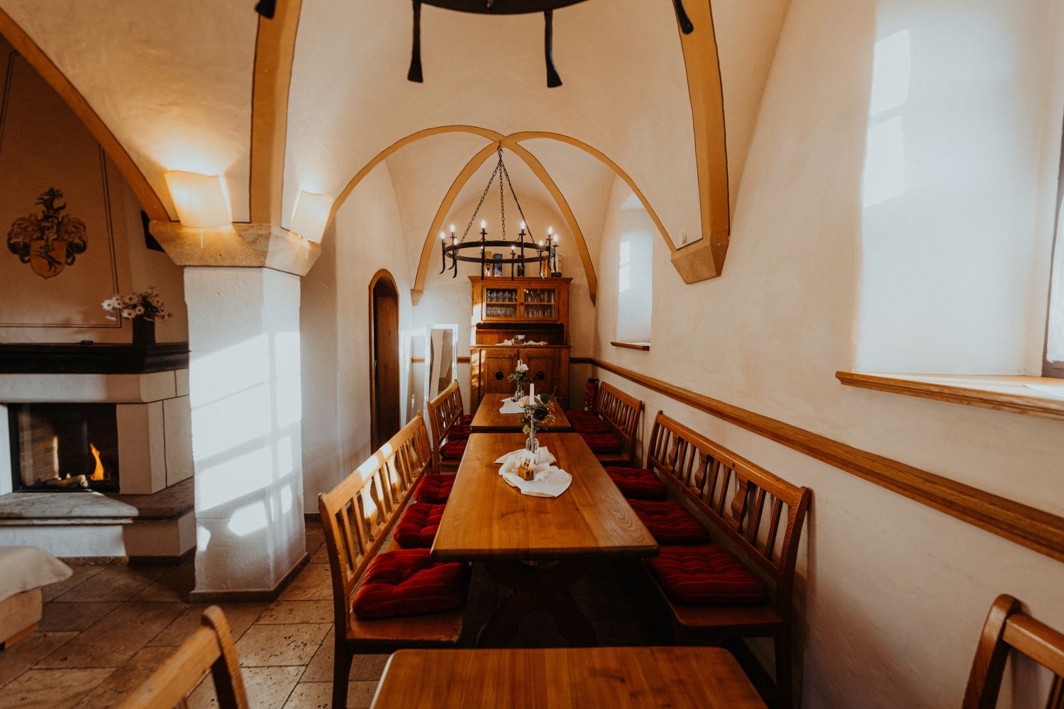 Umgeben von Kamin, Kreuzgewölbe und Sandsteinsäulen tagen Sie im Kaminzimmer in entspannter Loungeatmosphäre.
