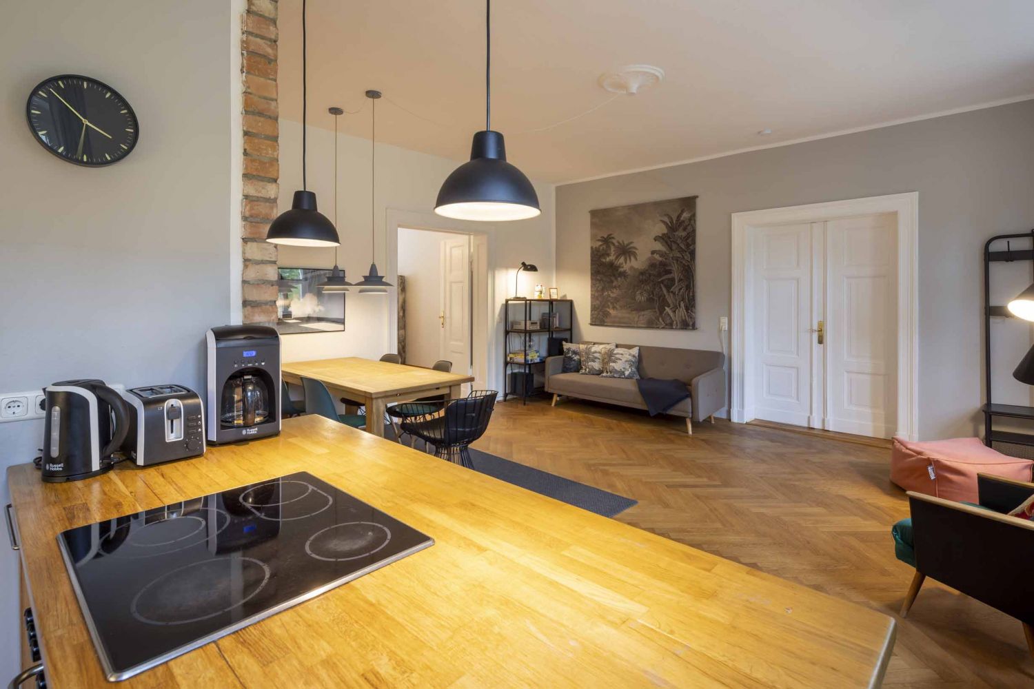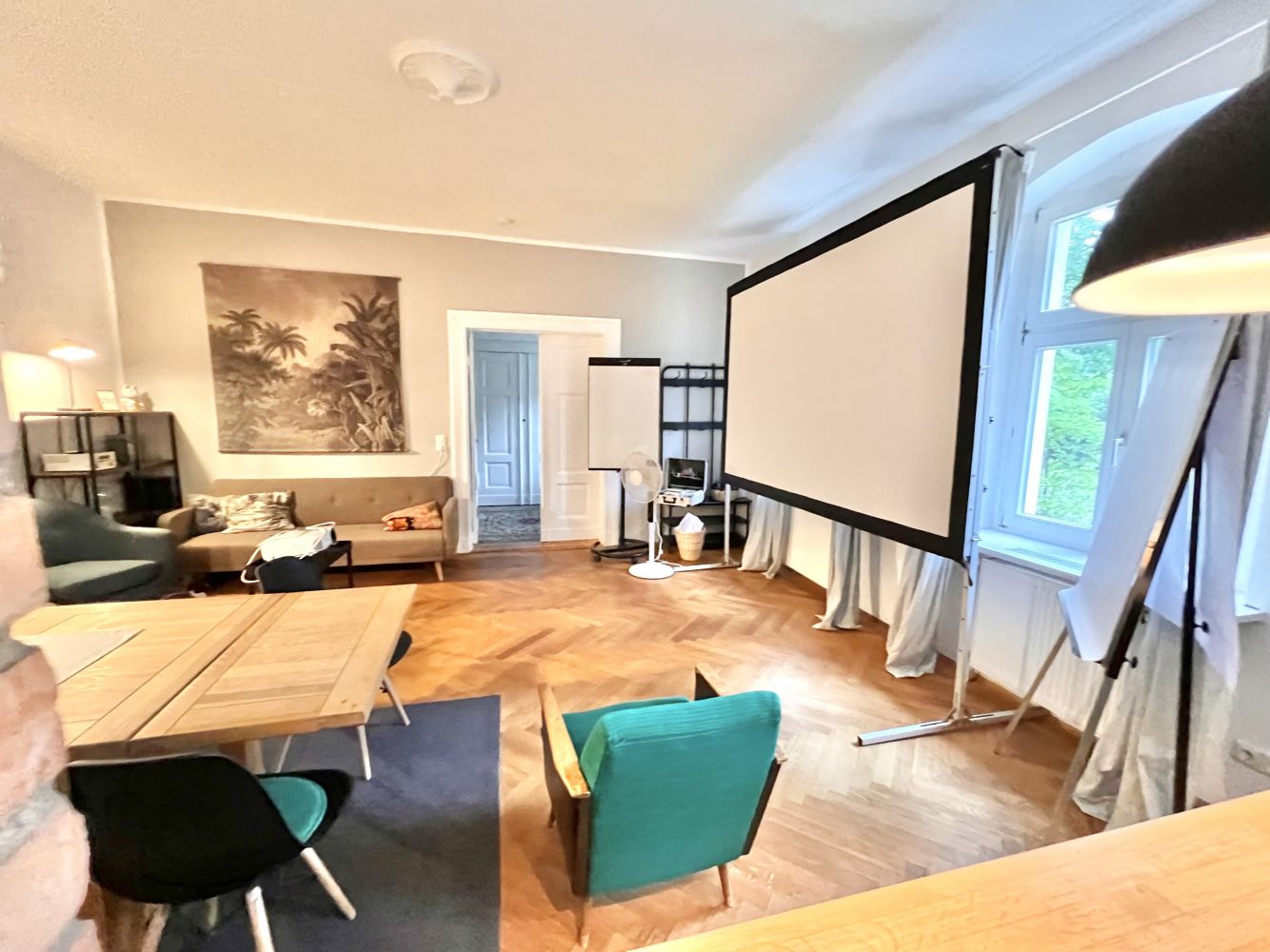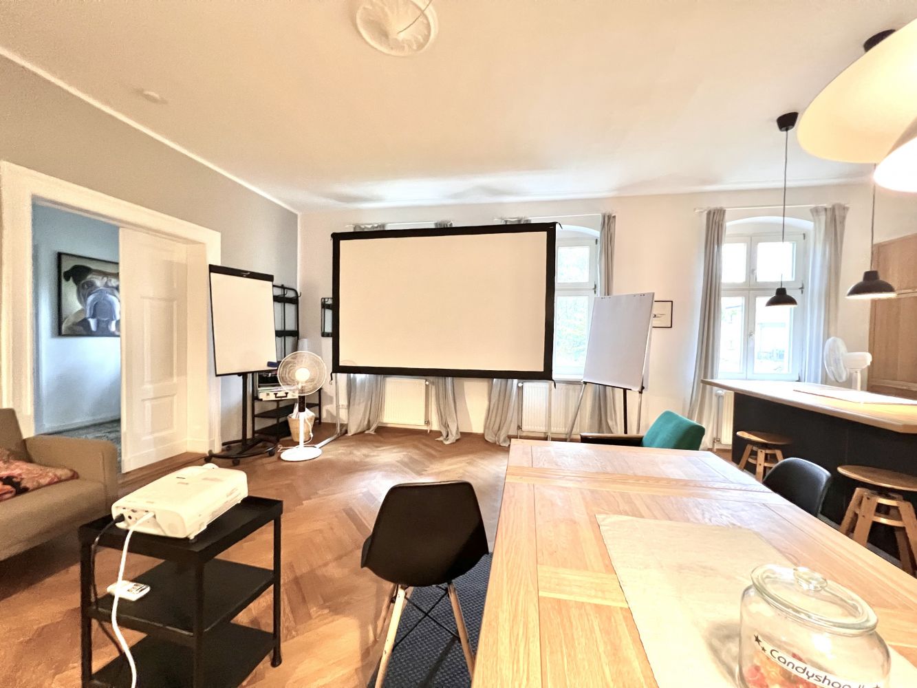 Unser Seminarraum Franz Fidel eigente sich hervorragend für kleinere Teams oder kleinere Teamarbeiten für bis zu 6 Personen. Der Tisch lässt sich erweitern, ein Badezimmer gibt es direkt nebenan und in der vollständig ausgestatten Küche lassen sich auch Team-Events, wie Kochen perfekt organisieren.