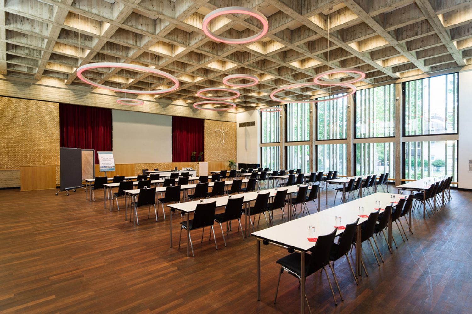Unser Aula bietet Platz für bis zu 200 Personen, bei einer Fläche von 300 qm.